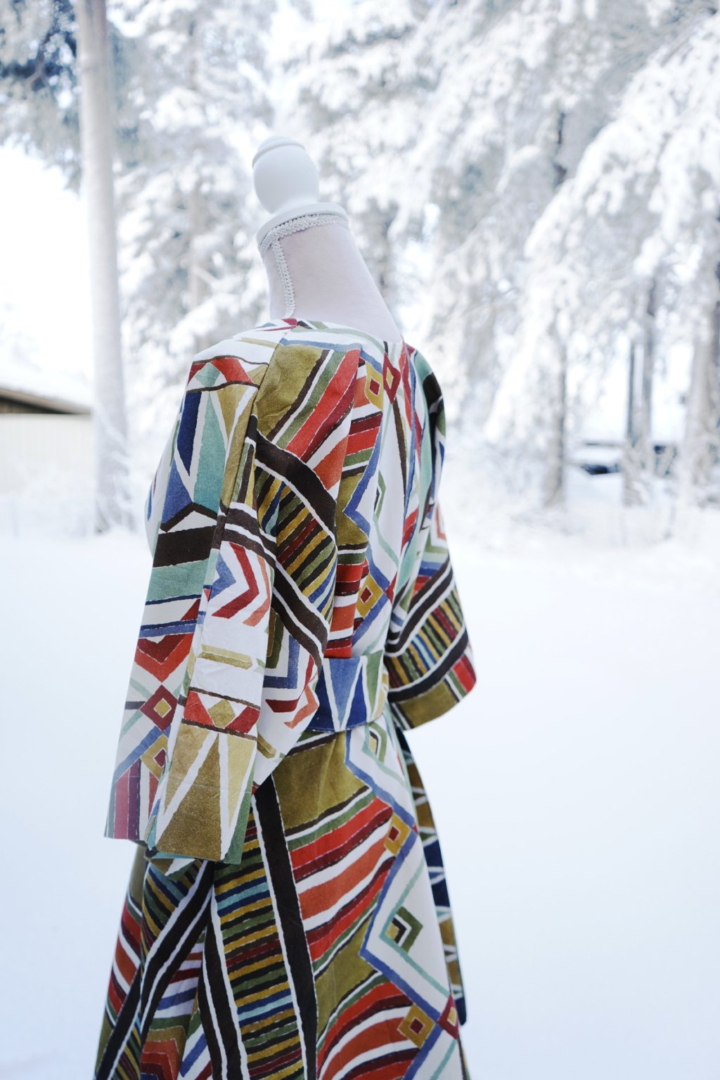 Ve svém druhém domově na severu Finska jsem se rozhodla pracovat trochu kreativněji a vytvářet pro Vás kousky z látek, které nacházím v místních secondhandech. Látky vybírám velmi pečlivě, vždy jsou v perfektním stavu a sahám po přírodních tkaninách. Šaty jsou tak od A do Z stvořené v Laponsku, střihově se opírám o kousky, které ode mě rádi nosíte a zároveň popouštím více uzdu fantazii.
