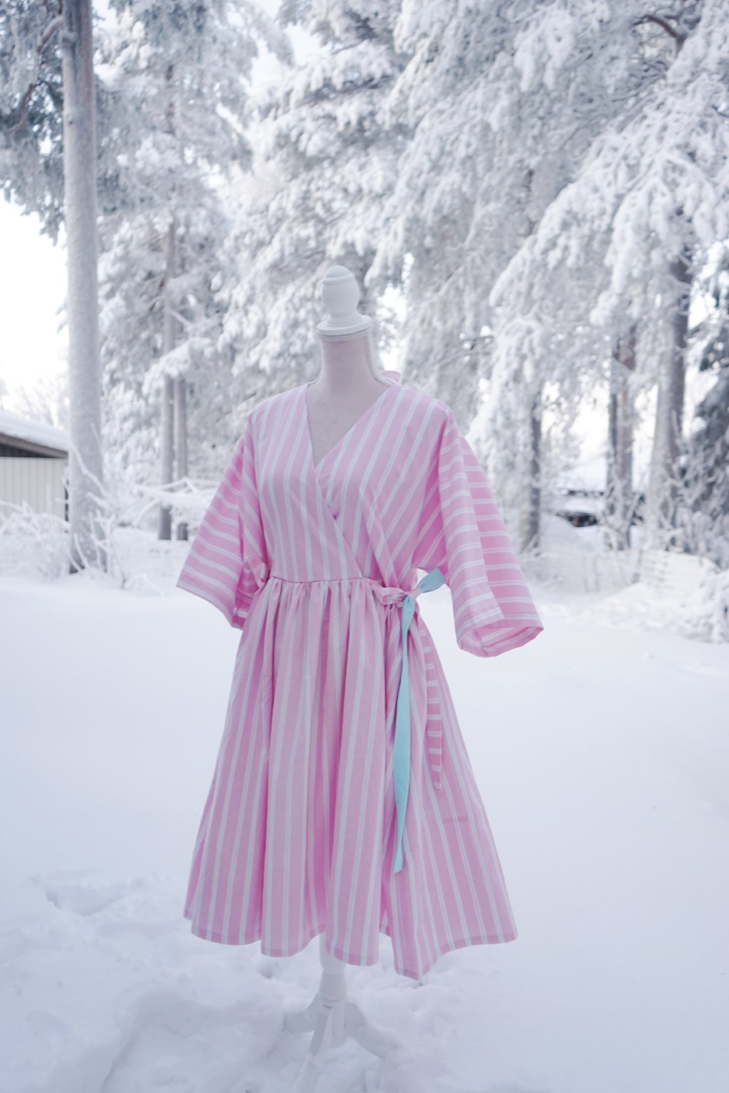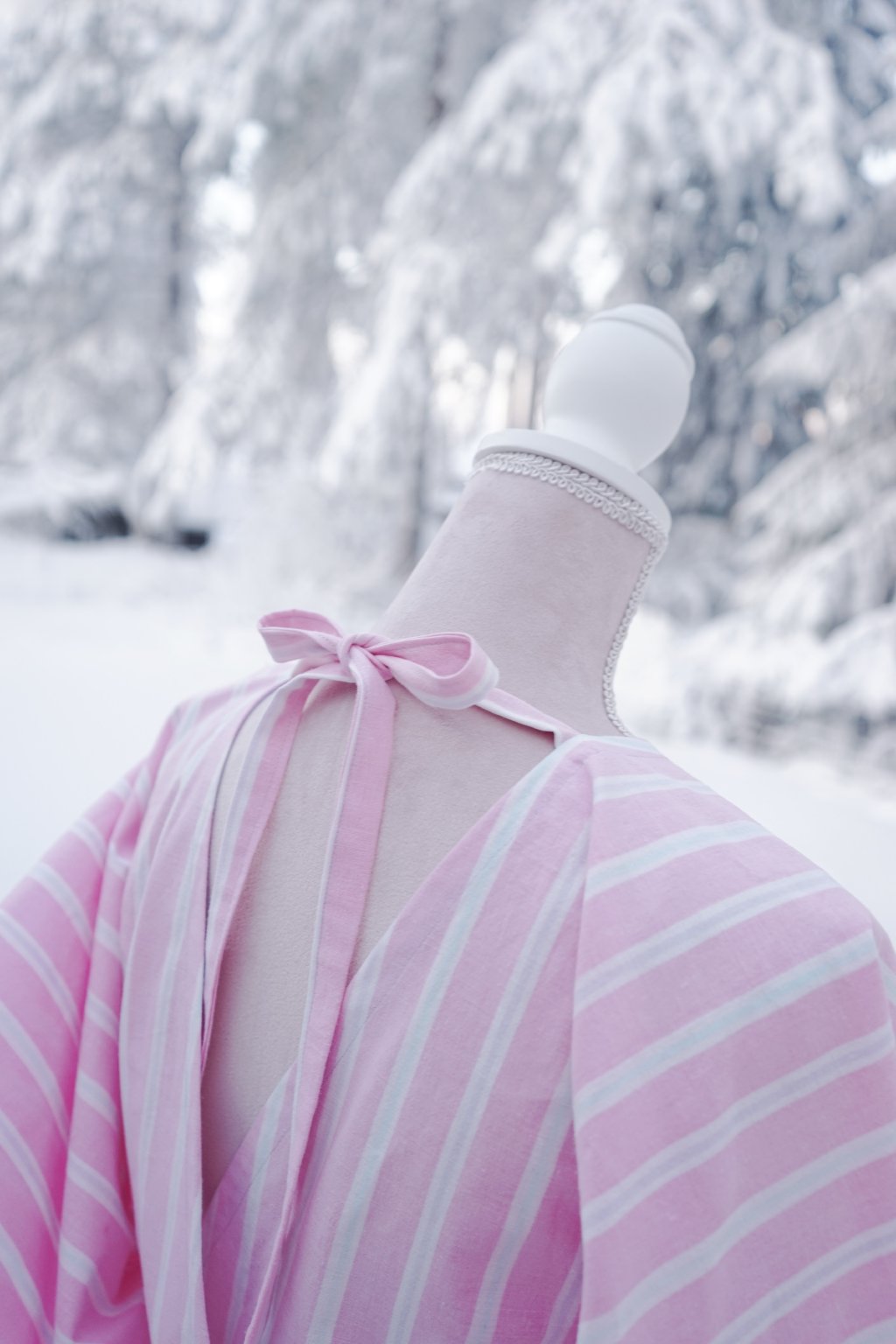 Ve svém druhém domově na severu Finska jsem se rozhodla pracovat trochu kreativněji a vytvářet pro Vás kousky z látek, které nacházím v místních secondhandech. Látky vybírám velmi pečlivě, vždy jsou v perfektním stavu a sahám po přírodních tkaninách. Šaty jsou tak od A do Z stvořené v Laponsku, střihově se opírám o kousky, které ode mě rádi nosíte a zároveň popouštím více uzdu fantazii.