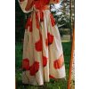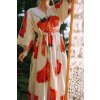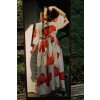 Vlčí máky mají kapsy, bohatou řasenou sukni, křížený V výstřih vepředu, na zádech kulatý a kimono rukávy. Díky svému střihu padnou až do velikost XL. Vypadají skvěle i bez pásku.