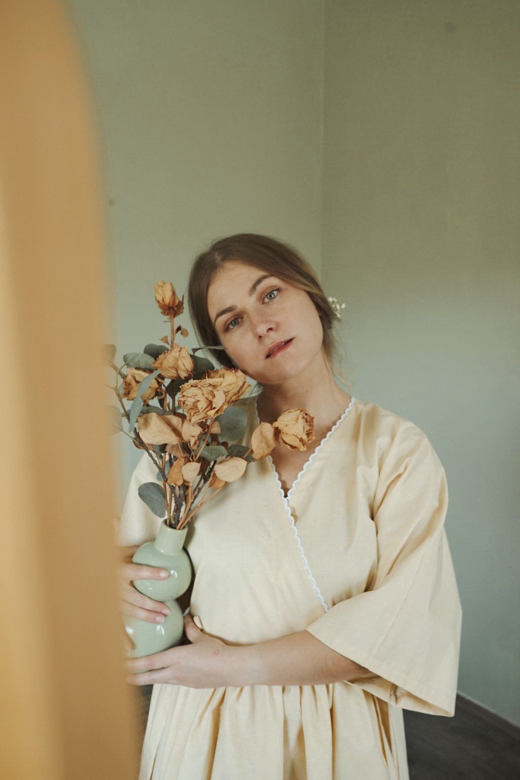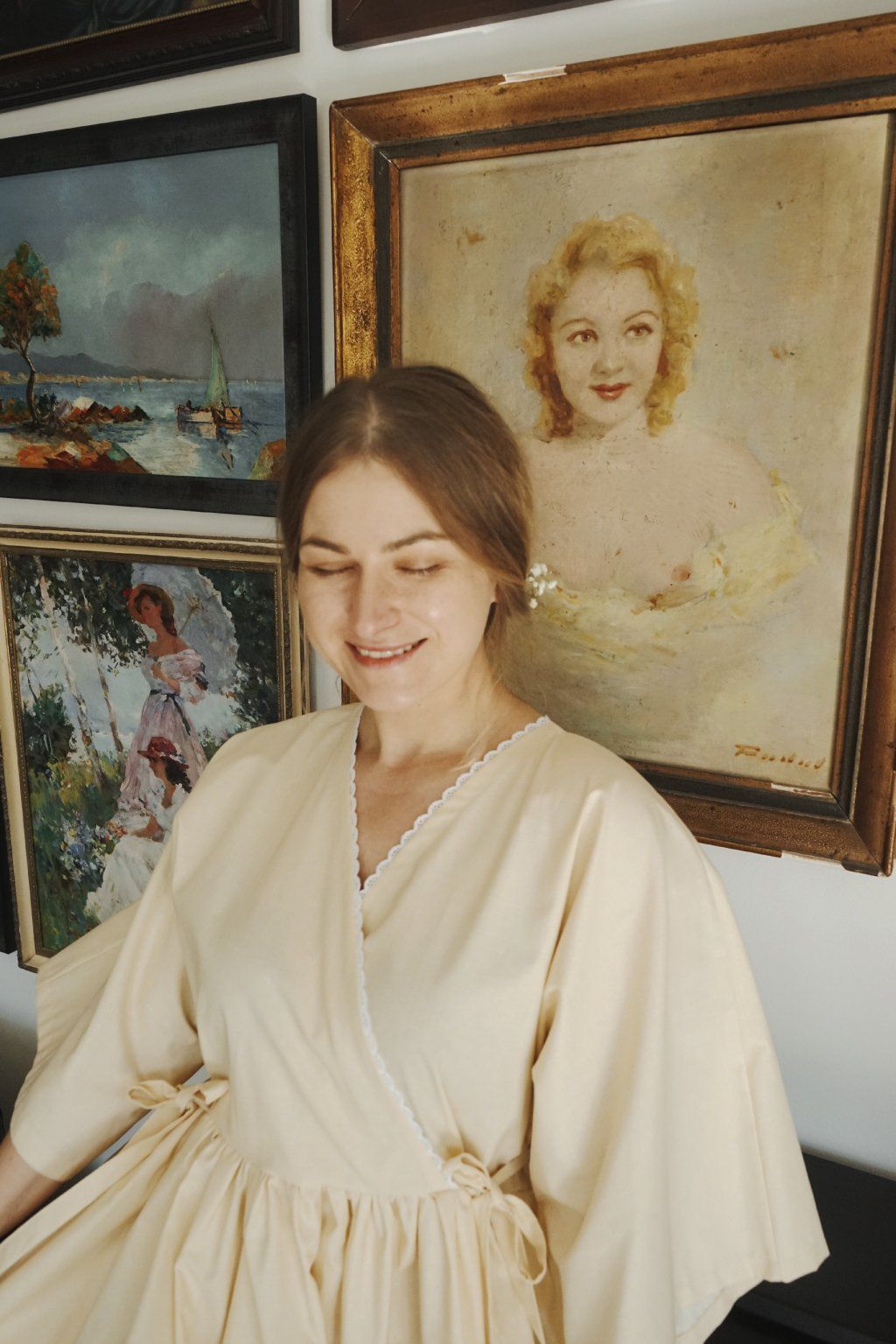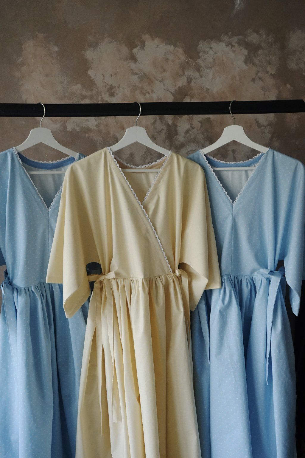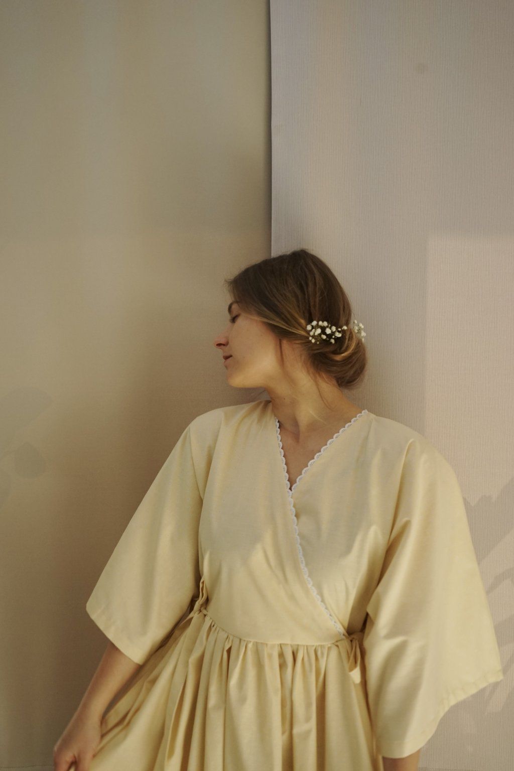 Bílé květy na máslově žlutém podkladu čisté bavlny, zdobná bavlněná krajka a mašle. Dokonalá jarní romanťárna! Střih Butter Yellow ocení všechny milovnice bohatých sukní. Typický kimono rukávy, které plní i funkci prodyšnosti a velikostní variability šatů. Oproti původním Almond Blossom mají tyto šaty skládaný výstřih.