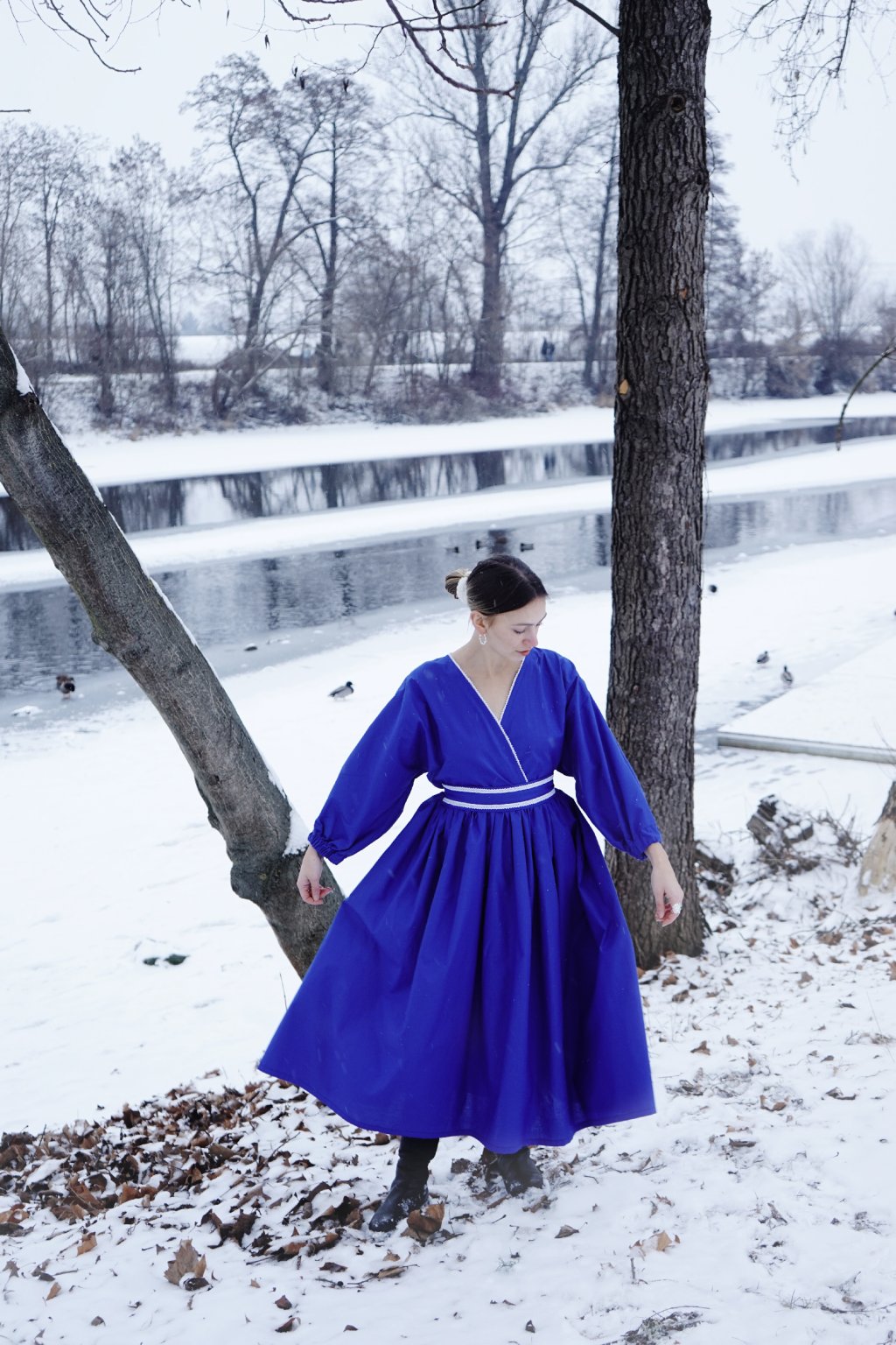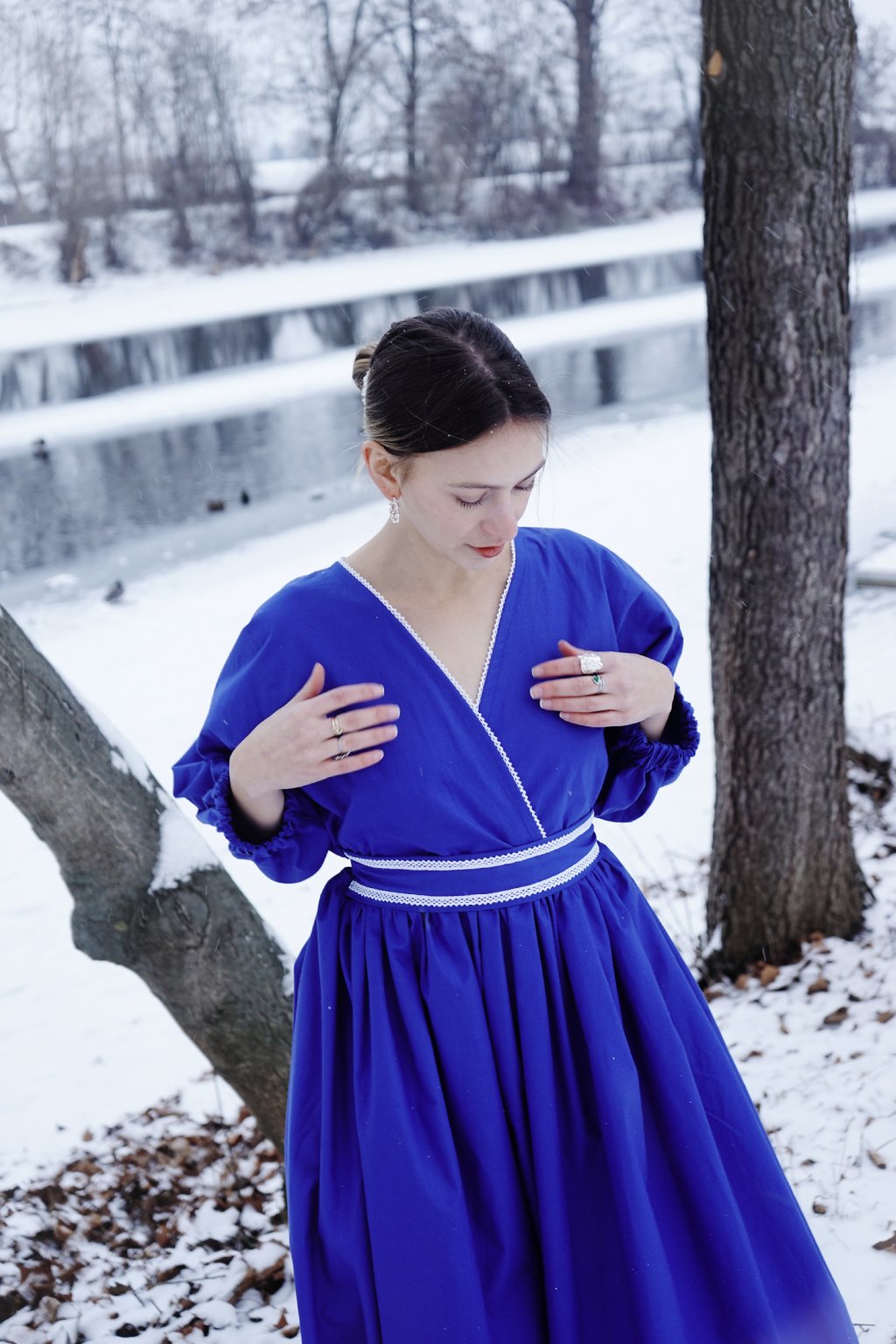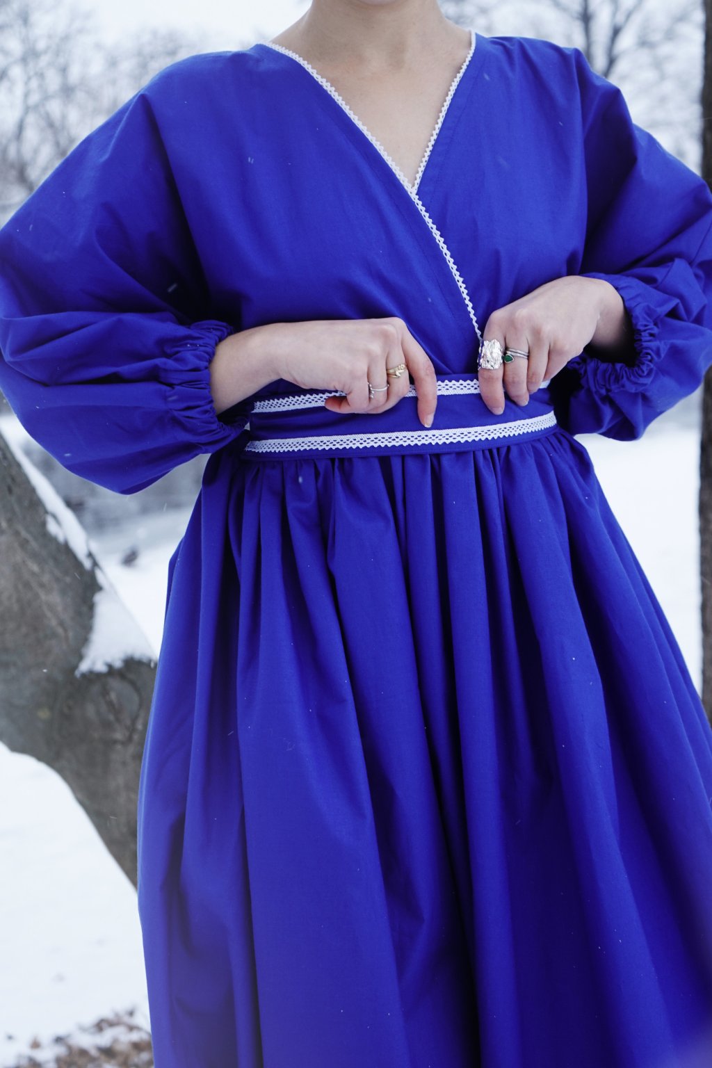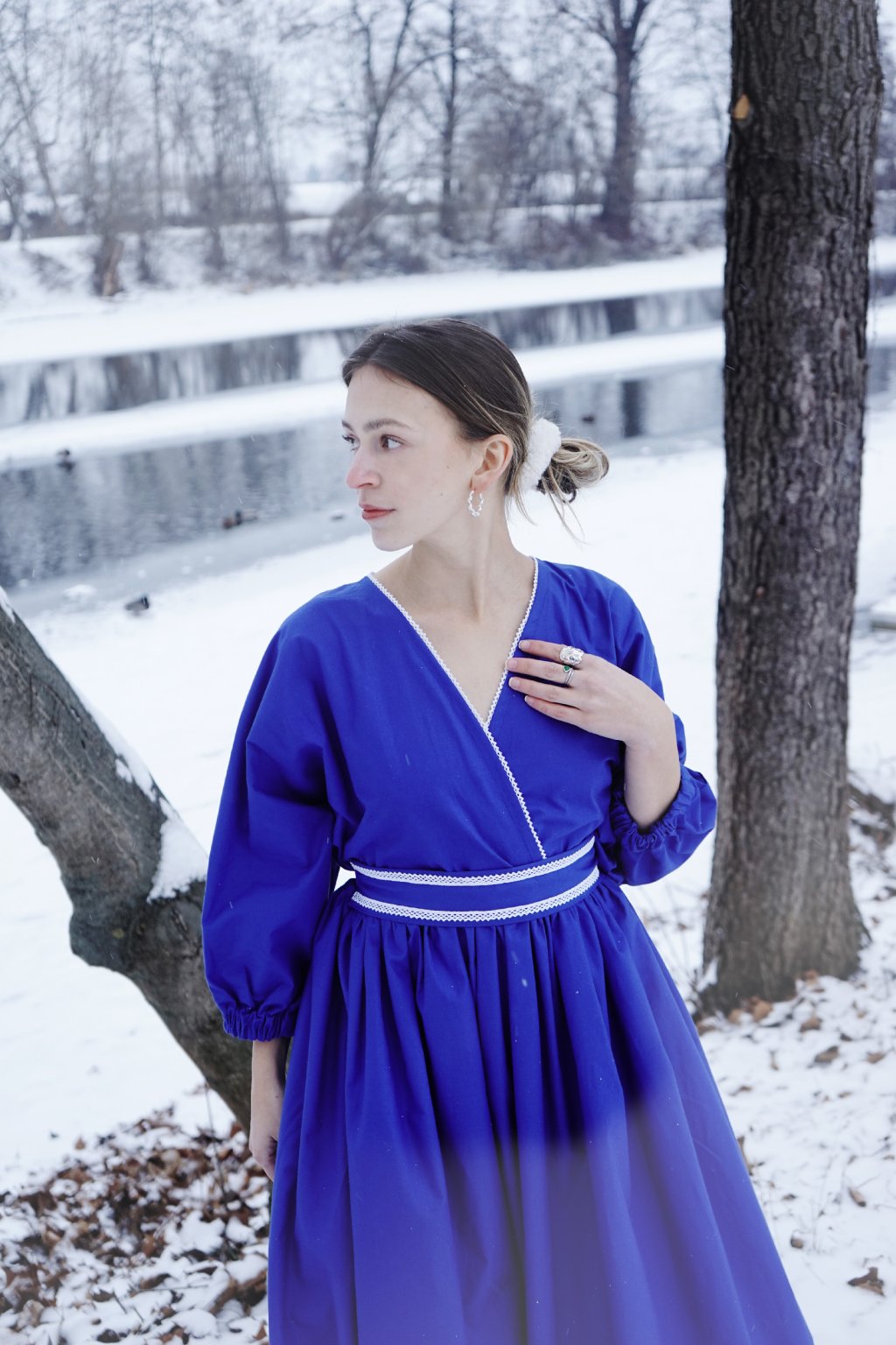 Jak jinak by měly vypadat šaty navržené v nejmrazivější měsíc roku. <3 Nechala jsem se unést kombinací královsky modré s bílou a ušila šaty z prémiové bavlny, které zdobí nádherná bavlněná krajka.