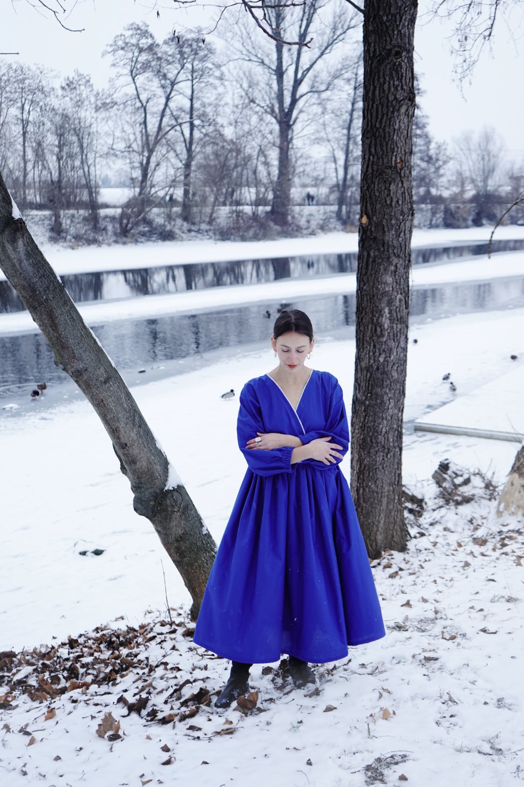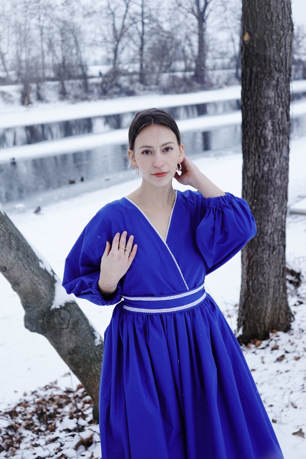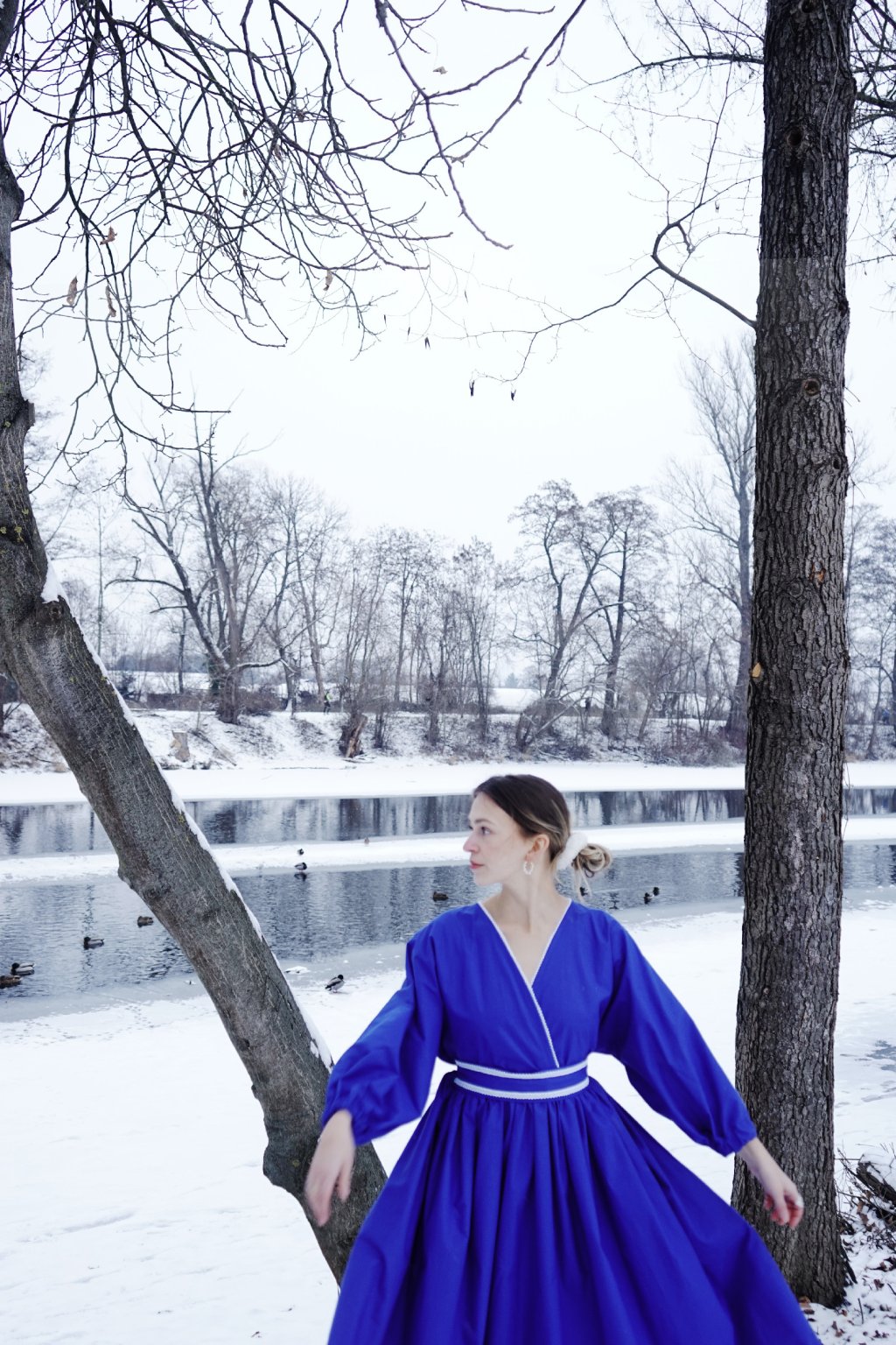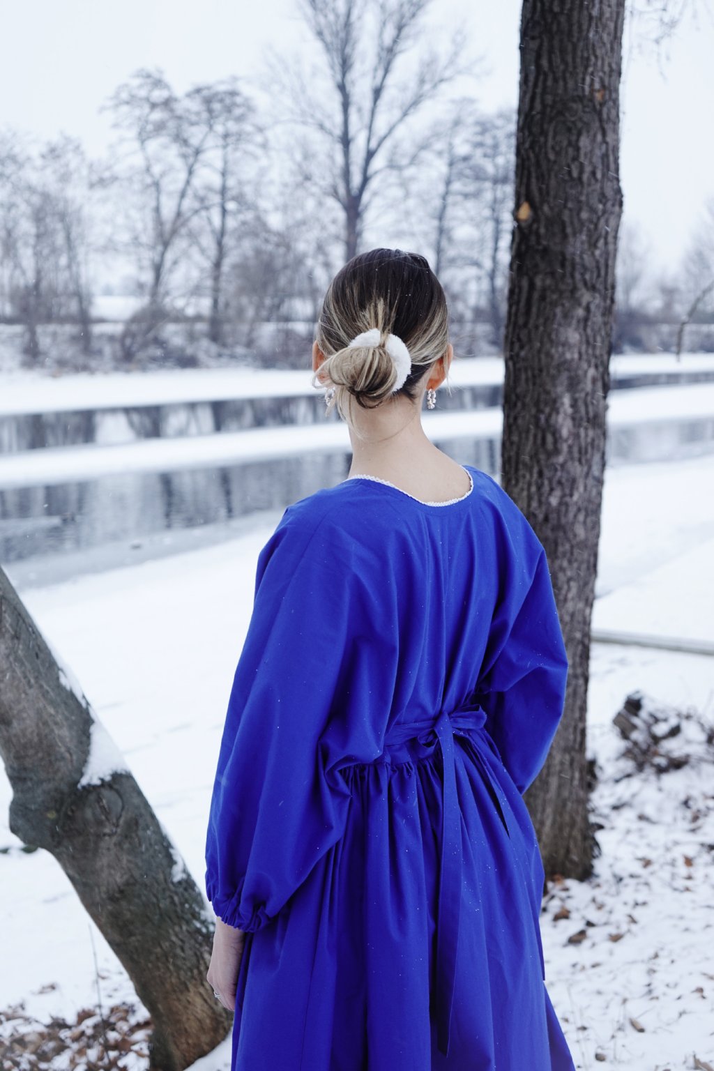 Jak jinak by měly vypadat šaty navržené v nejmrazivější měsíc roku. <3 Nechala jsem se unést kombinací královsky modré s bílou a ušila šaty z prémiové bavlny, které zdobí nádherná bavlněná krajka.