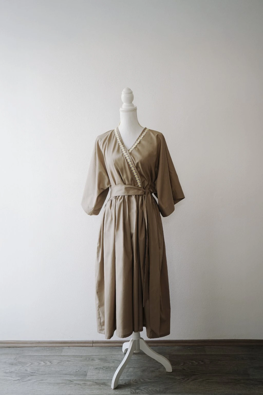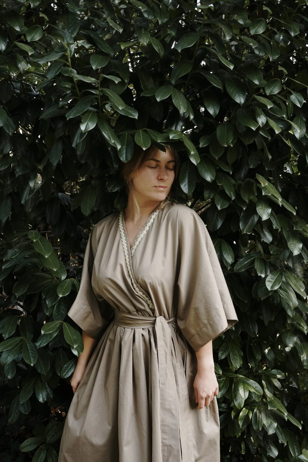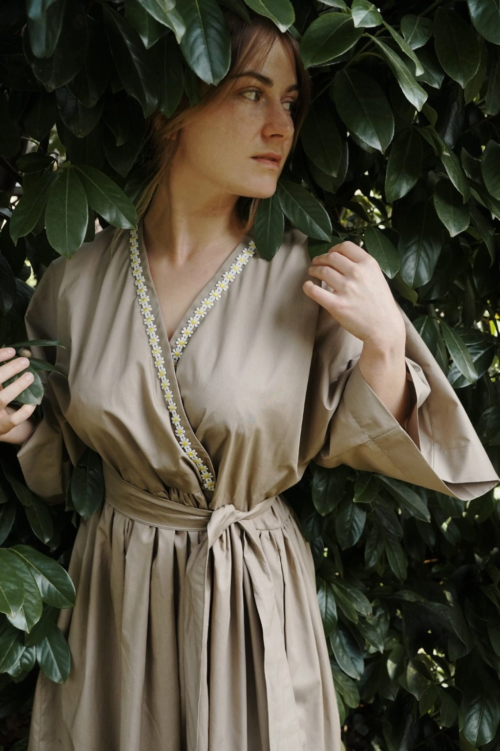 Kopretiny můžete případně nosit i s V výstřihem na zádech, jelikož jsem jejich cedulku schovala do sukně. Nicméně jsou vymyšlené na Včko vepředu a tak jim to dle mě sluší nejvíc! Skládaný výstřih, který se neotevírá a kimono rukávy jsou jejich alfou omegou. Sukně je bohatě řasená s prodlouženou midi délkou a skrývá kapsy. K šatům je samozřejmě i pásek ze stejné látky, nicméně jim to sluší i bez něj!