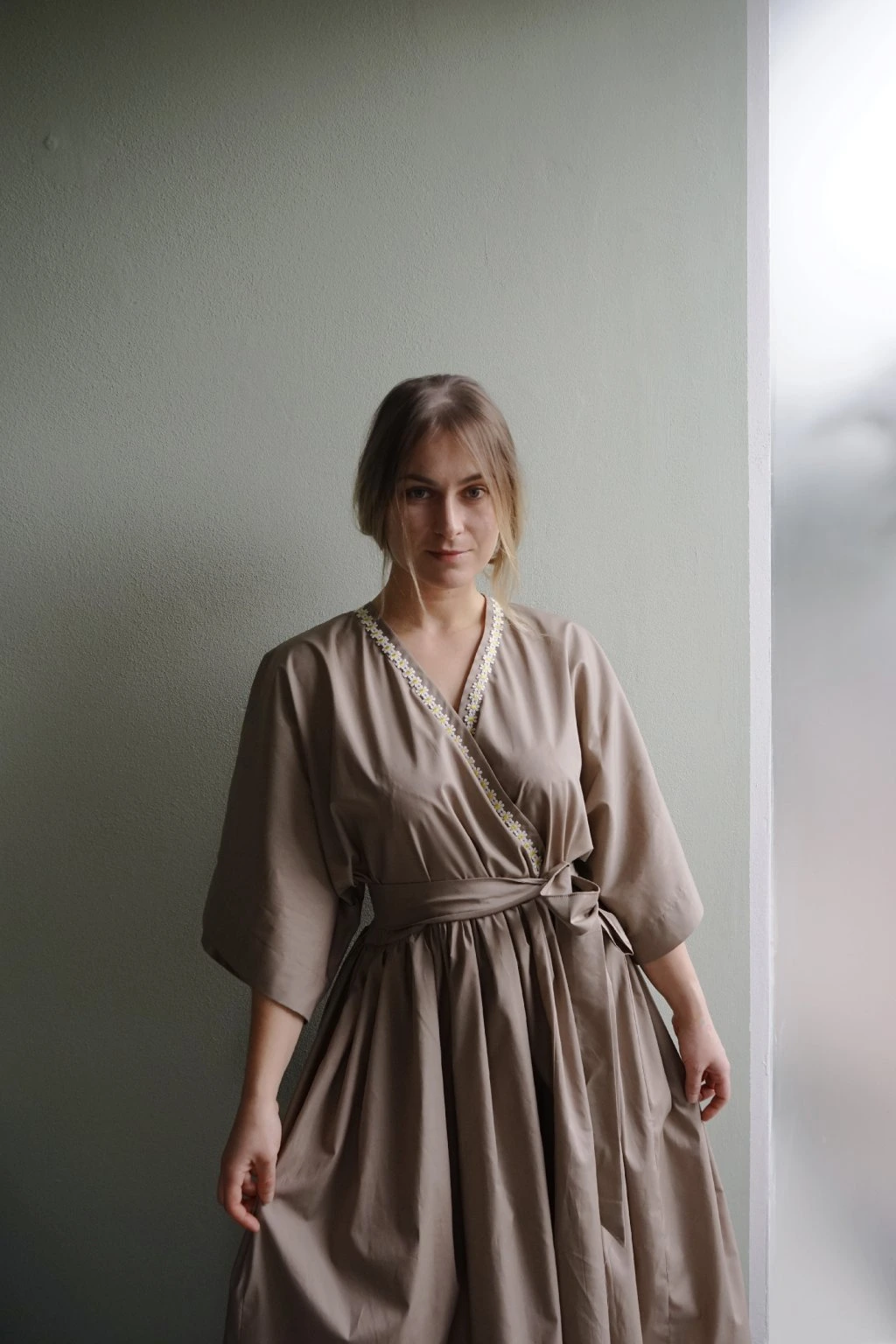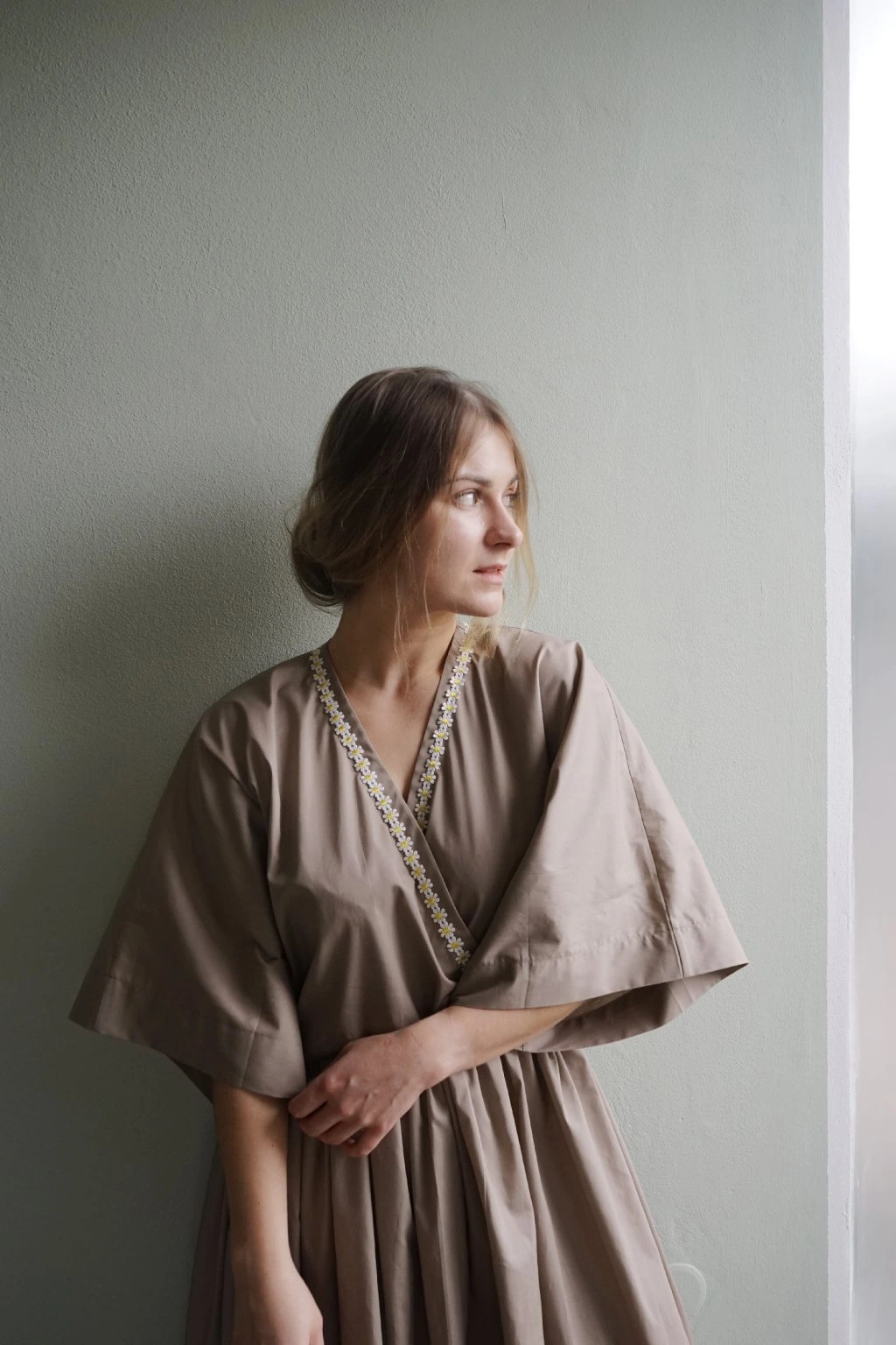 A tak jsem věnovala těmto kvítkům jedny šaty. Jak jinak než na jaro. <3 Decentně ale efektně zdobené vyšívanými kopretinami po celém obvodu výstřihu. Ušité z bavlněného popelínu – přírodní látky s opravdu krásným, luxusním leskem!