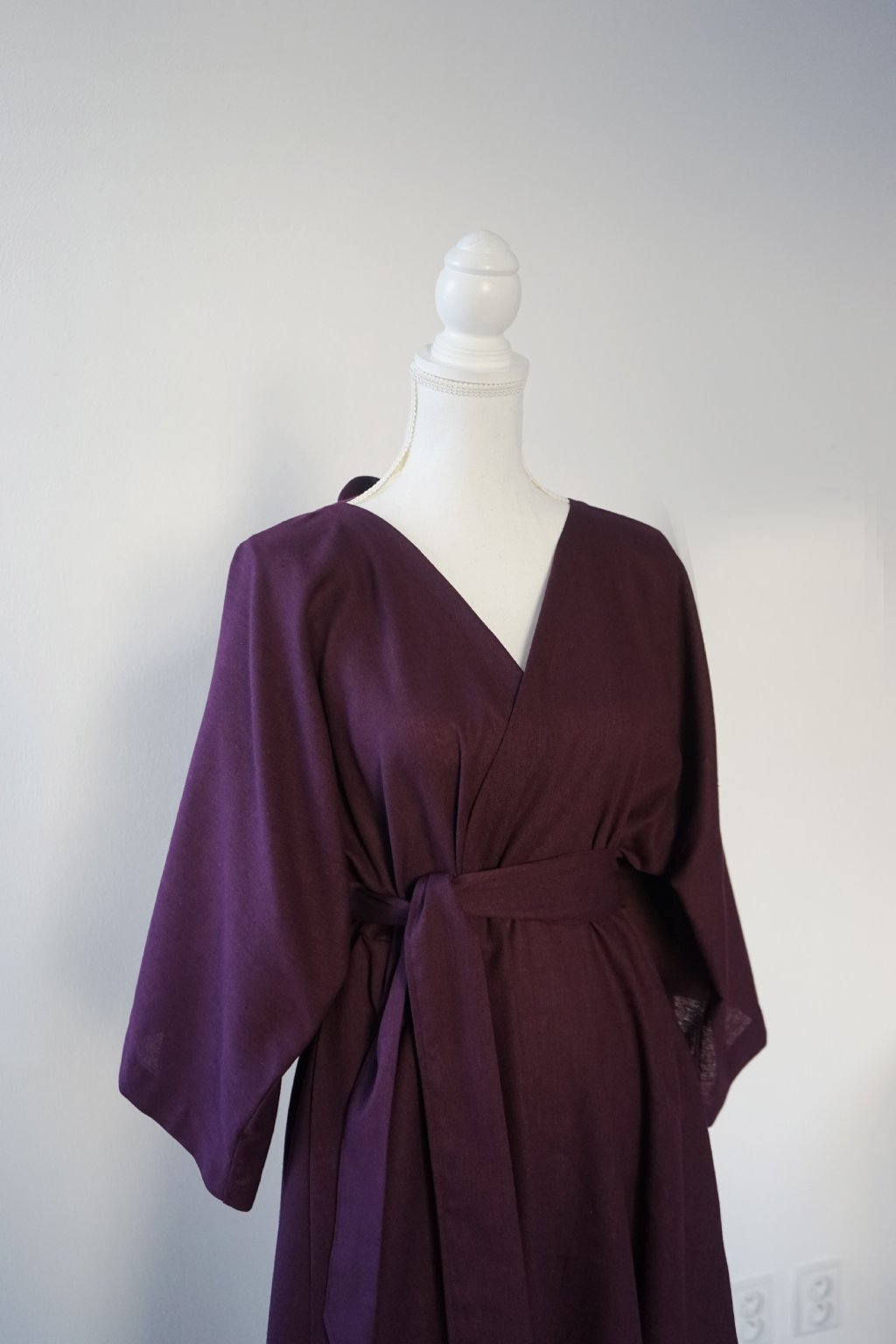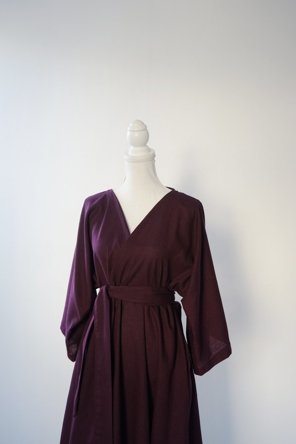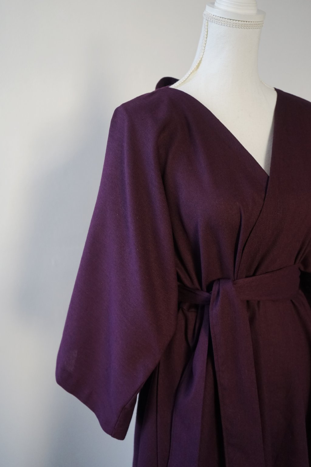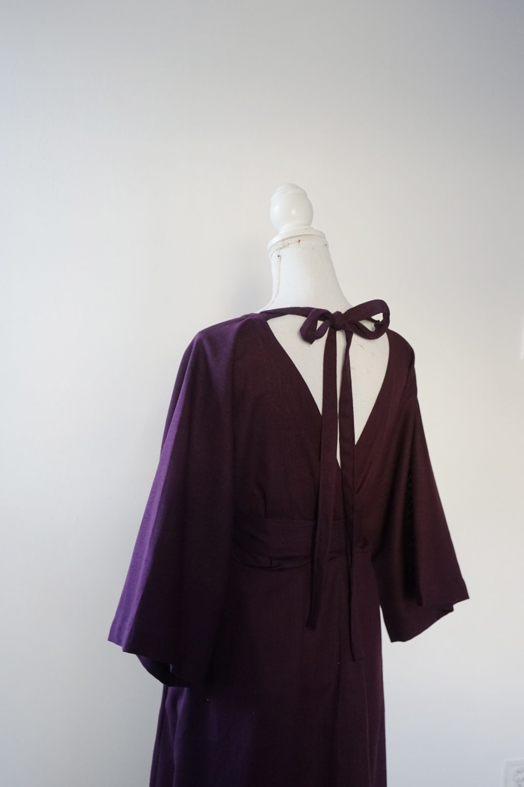 Střih je typický samozřejmě svými kimono rukávy a kříženým výstřihem, který najdete z obou stran! Aby Vám šaty náhodou nespadly z ramen, výstřih si pojistíte elegantním vázáním na mašli za krkem. Zároveň tak můžete i přizpůsobit šíři výstřihu.