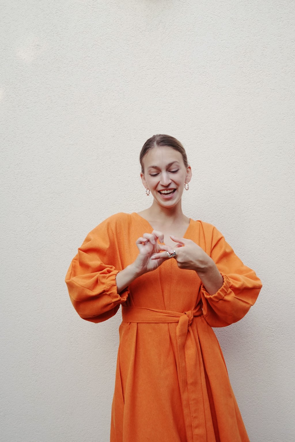 Letošní podzim jsem Váš nejoblíbenější střih Lahvových šatů ušila i z tohoto úžasně zářivého, oranžového odstínu vysokogramážní bavlny!