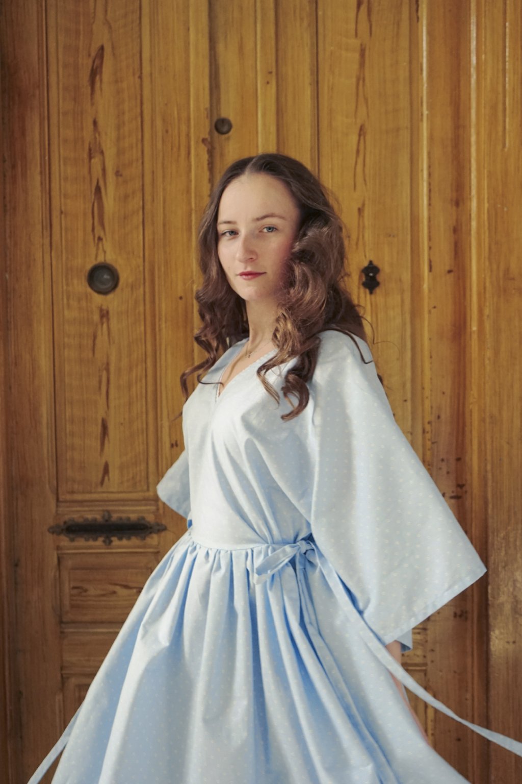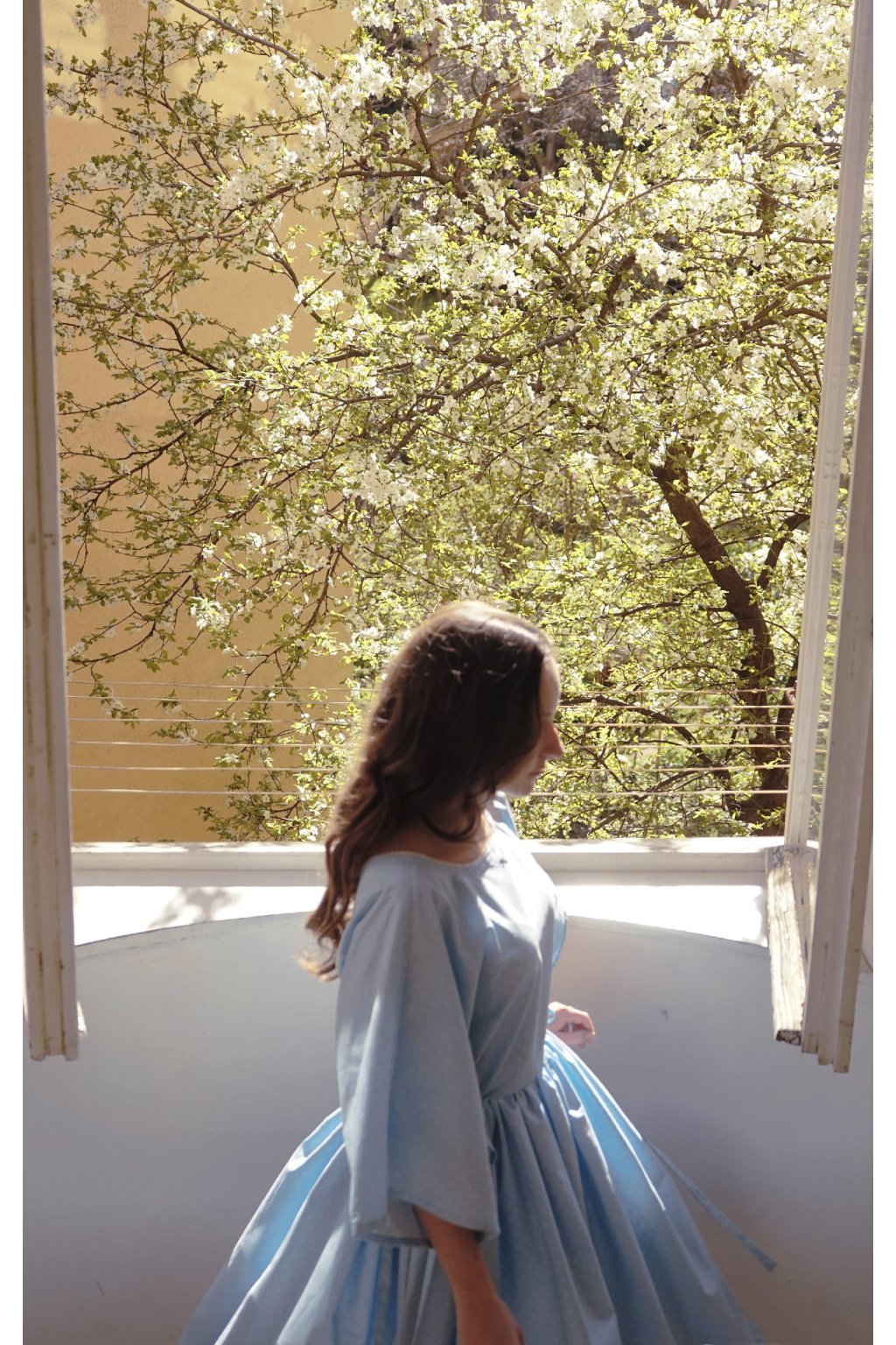 Šaty, inspirované mým nejoblíbenějším obrazem Vincenta Van Gogha. Střih kopíruje šaty Soda Zitrone, které už v nabídce nenajdete a tak je toto jejich něžná, baby blue ségra. Bílé květy na modrém podkladu čisté bavlny, zdobná bavlněná krajka a mašle. Dokonalá jarní romanťárna!