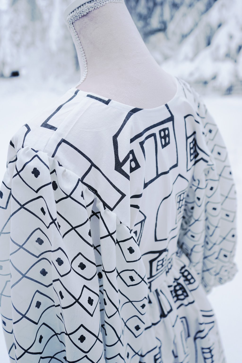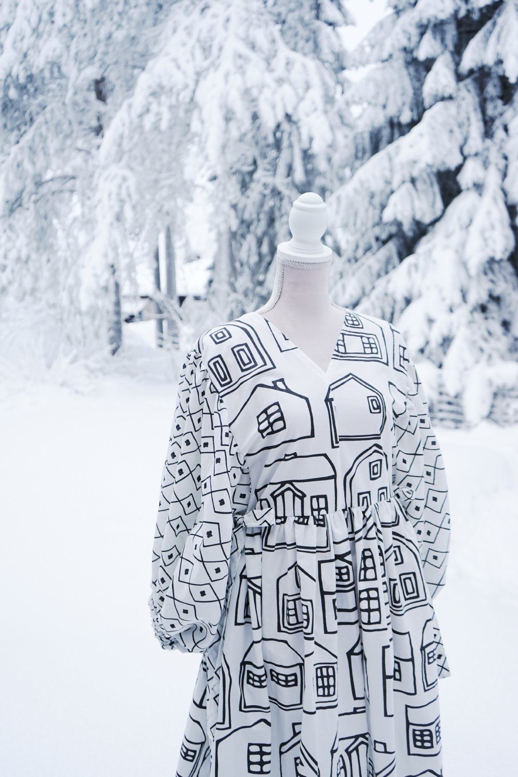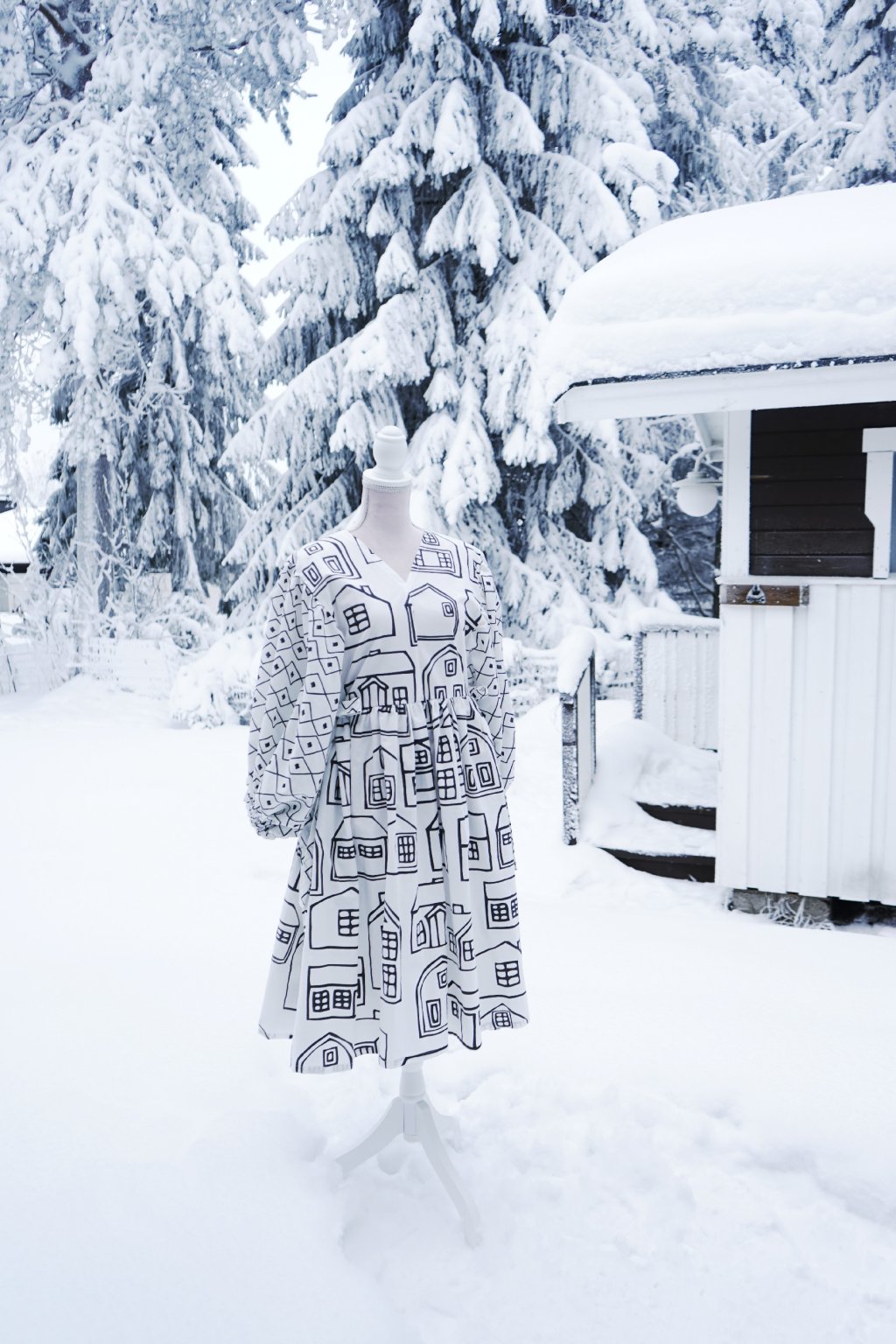 Ve svém druhém domově na severu Finska jsem se rozhodla pracovat trochu kreativněji a vytvářet pro Vás kousky z látek, které nacházím v místních secondhandech. Látky vybírám velmi pečlivě, vždy jsou v perfektním stavu a sahám po přírodních tkaninách. Šaty jsou tak od A do Z stvořené v Laponsku, střihově se opírám o kousky, které ode mě rádi nosíte a zároveň popouštím více uzdu fantazii.