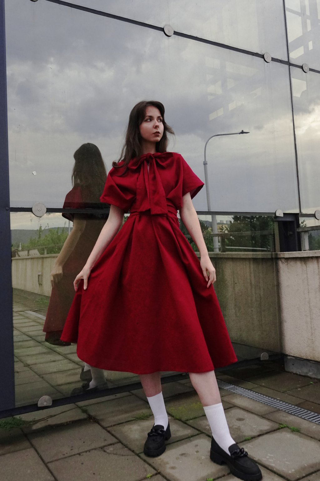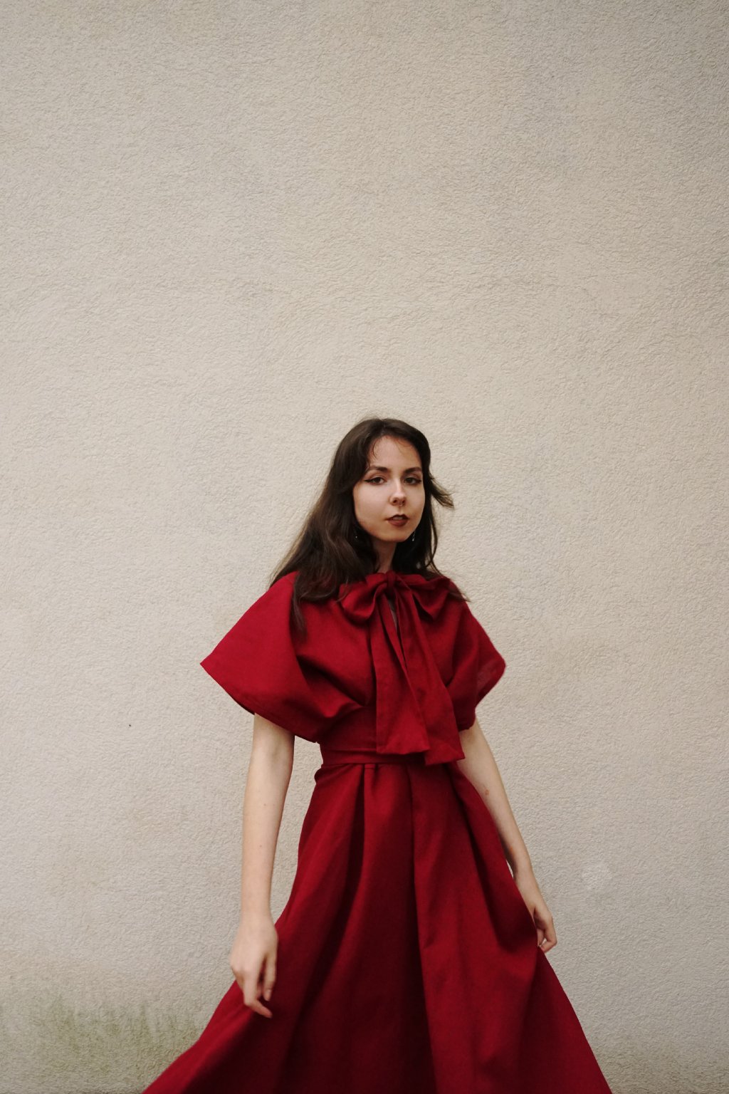 Je libo mašli nebo stojáček? U těchto šatů se můžete rozhodnout podle nálady. Maraschino Cherry jsou ušité z krásné kombinace lnu a bavlny, kterou jsem si velmi oblíbila u svých minulých designů a to v nádherné, syté, třešňové barvě. Látka s hrubší strukturou, která však nechá Vaše tělo dýchat. Budou Vám tak dělat radost celoročně.