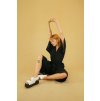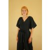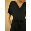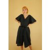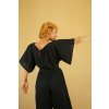 Jak je možný, že ta velikost fakt sedí všem? Odpověď se skrývá v kimono rukávech, dostatečné šířky overalu a střihu bez švu v pase, který si vypasujete páskem dle potřeby. Pásek je součástí overalu. Anna nosí velikost S.