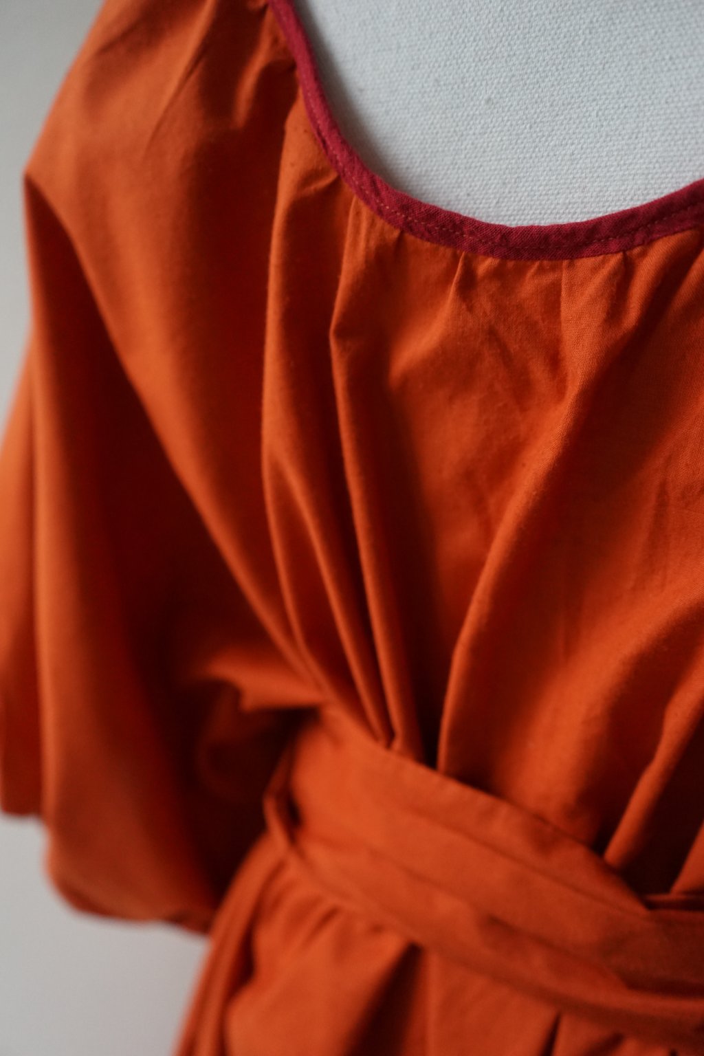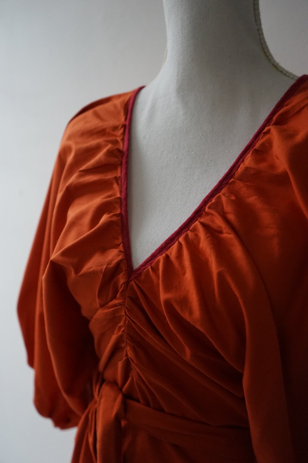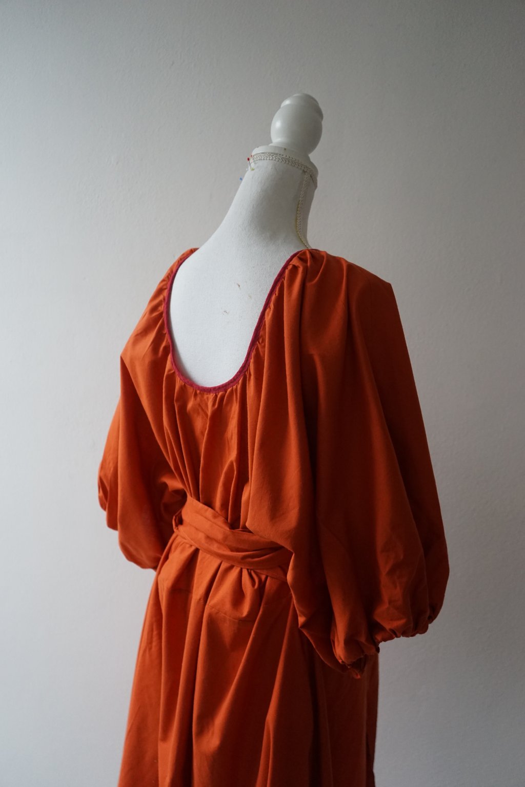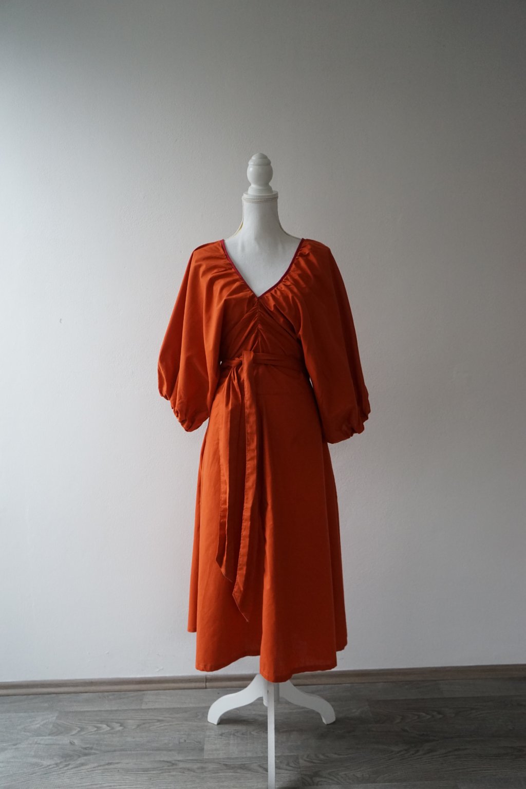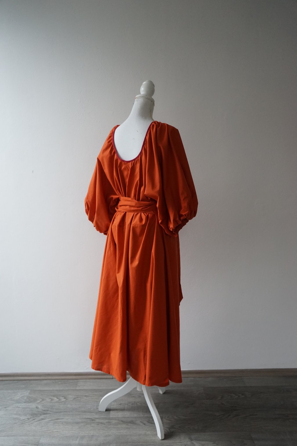 Jinak jsou šaty naprosto shodné s Cloudberry dresu, které jsem šila. Obrovské balónové rukávy, řasený výstřih, áčková sukně, kapsy. Šaty byly použity na focení, jsou tedy prané.