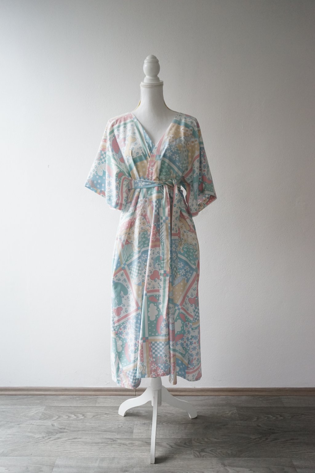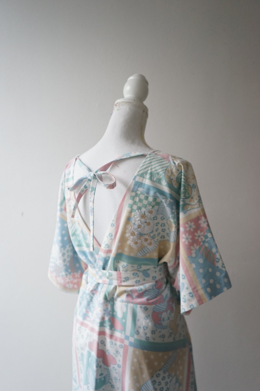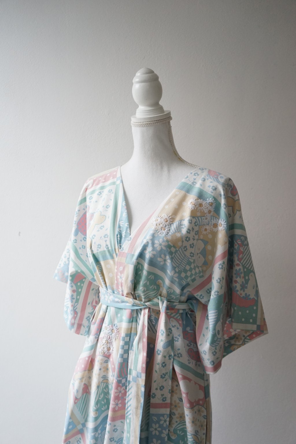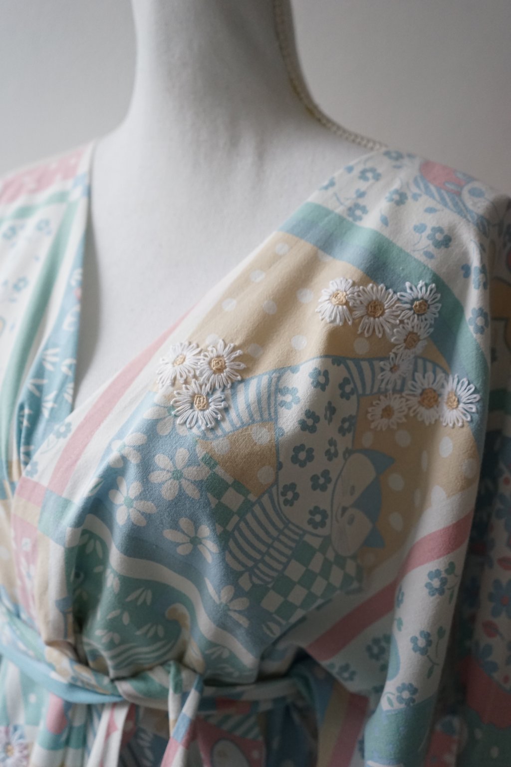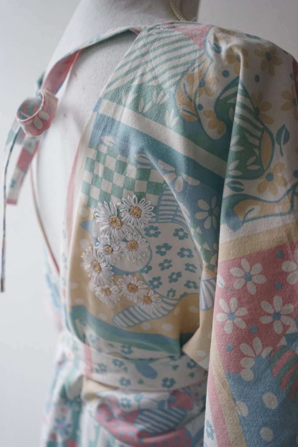 Máte-li rádi můj střih Olivy, tyto šaty se Vám budou líbit. Obdobný střih s mašlí za krkem, kimono rukávy, kapsami z nádherné secondhandové pastelové bavlny. Kvůli výšivce je na těchto šatech bylo ještě víc práce o ot víc jsou speciální. <3