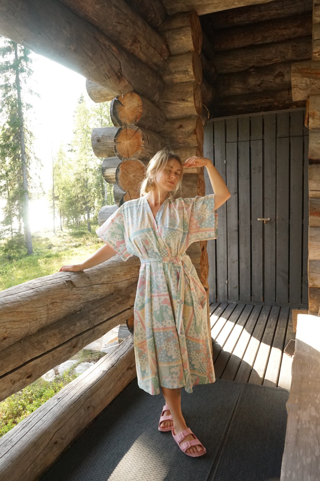 UPCYCLED: Pastel dress jsem ušila v Laponsku z místních secondandových látek, tyto jsou nicméně o něco výjimečnější! Ušila jsem je totiž dvakrát. Ty jedny už svůj domov mají a tyto druhé měly pár vad na látce, kterých jsem si všimla až po došití šatů. A tak na nich teď najdete ručně vyšívané kopretiny!