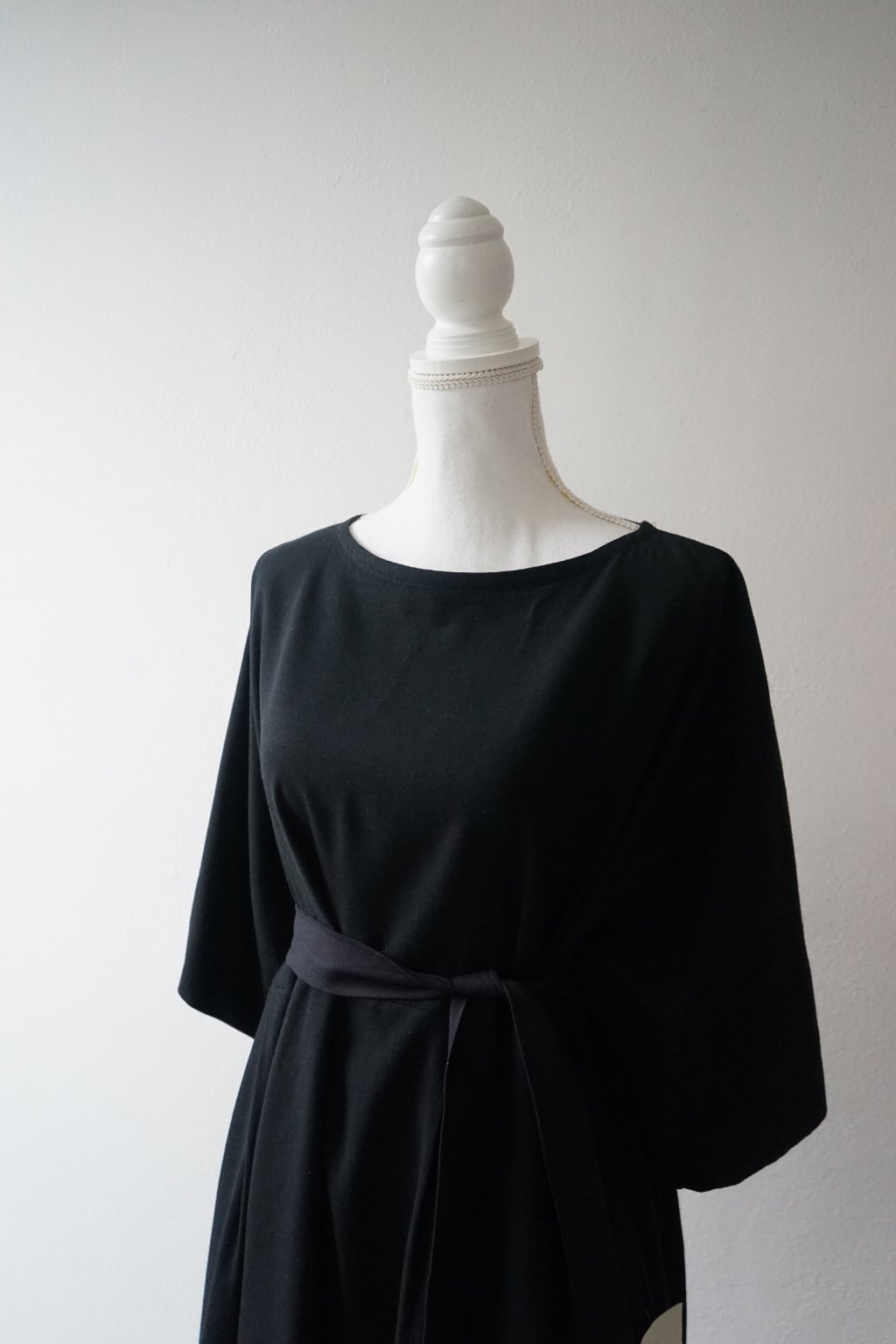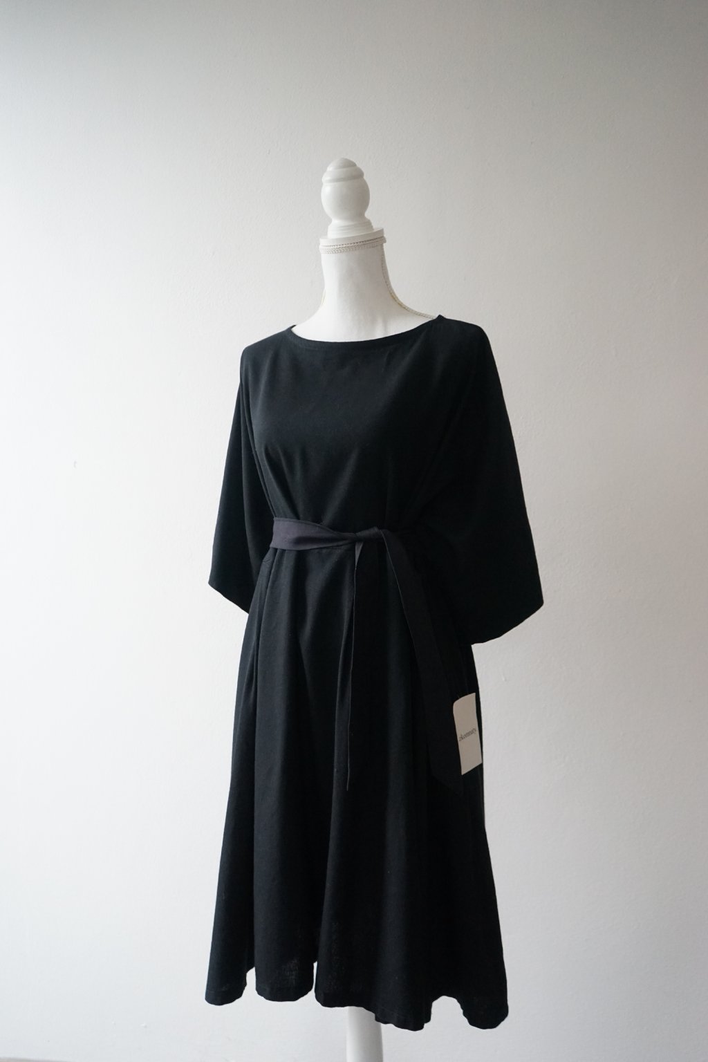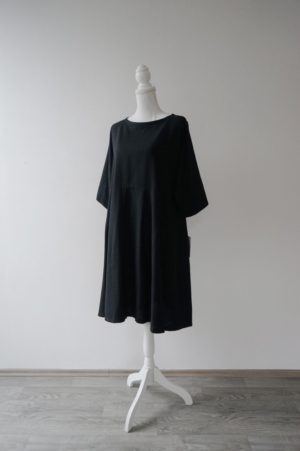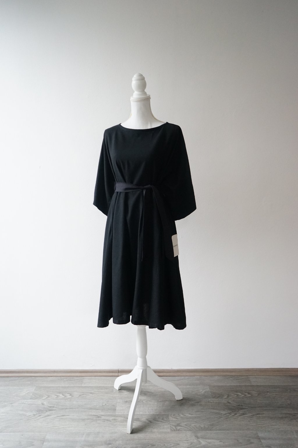 Tento model je narozdíl od šatů, které byly nakonec v prodeji, ušit z kombinace lnu a viskózy, což je úžasný, příjemná látka, která dýchá a šaty vynosíte celoročně. Součástí šatů NENÍ pásek, ten ušit k těmto nebyl a látku již nemám k dispozici, abych pásek došila. Na fotografiích jsem použila pásek z bavlny, který není součástí šatů a nemá stejný tón černé, nicméně pro účely fotek, jak by šaty vypadaly přepásané, se hodil. :)