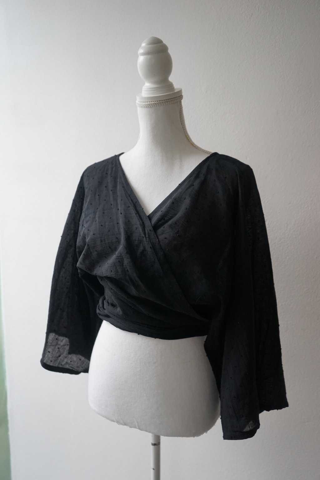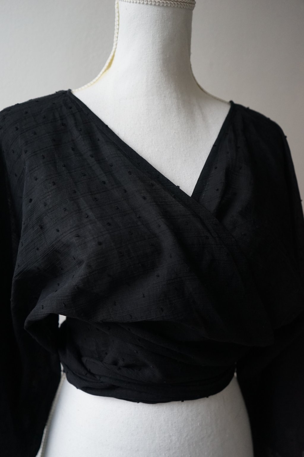 SAMPLE TOP - Tento top jsem nikdy nevydala. Vychází z mého střihu Wraptopu, ale je ušit z úžasné, jemné bavlny s puntíkatou strukturou.