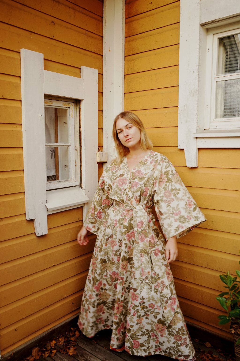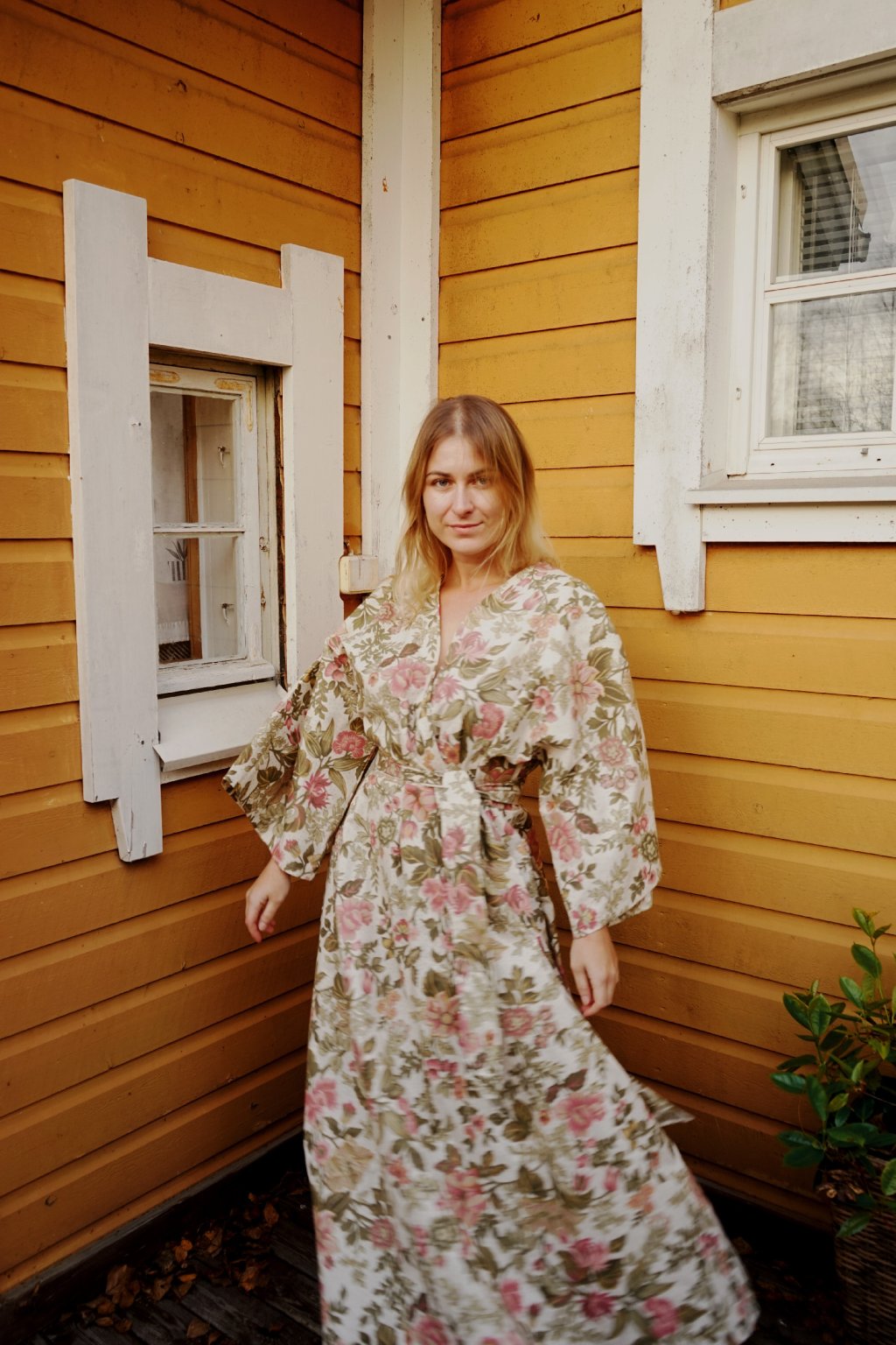 Ve svém druhém domově na severu Finska jsem se rozhodla pracovat trochu kreativněji a vytvářet pro Vás kousky z látek, které nacházím v místních secondhandech. Látky vybírám velmi pečlivě, vždy jsou v perfektním stavu a sahám po přírodních tkaninách. Šaty jsou tak od A do Z stvořené v Laponsku, střihově se opírám o kousky, které ode mě rádi nosíte a zároveň popouštím více uzdu fantazii.