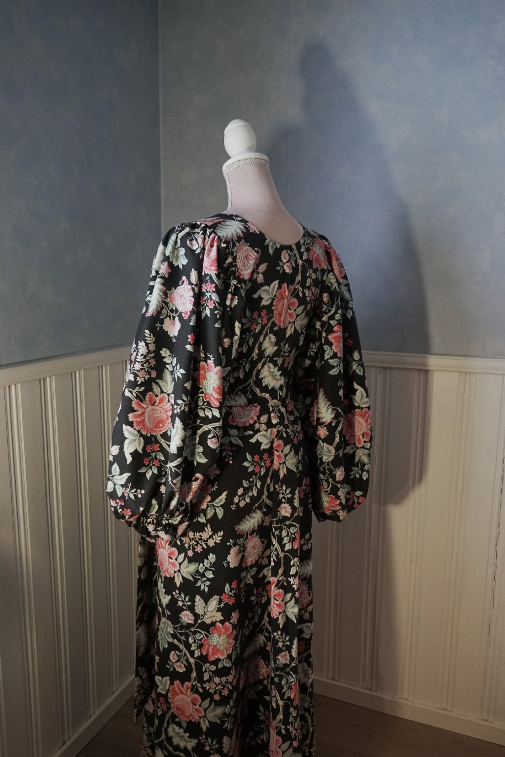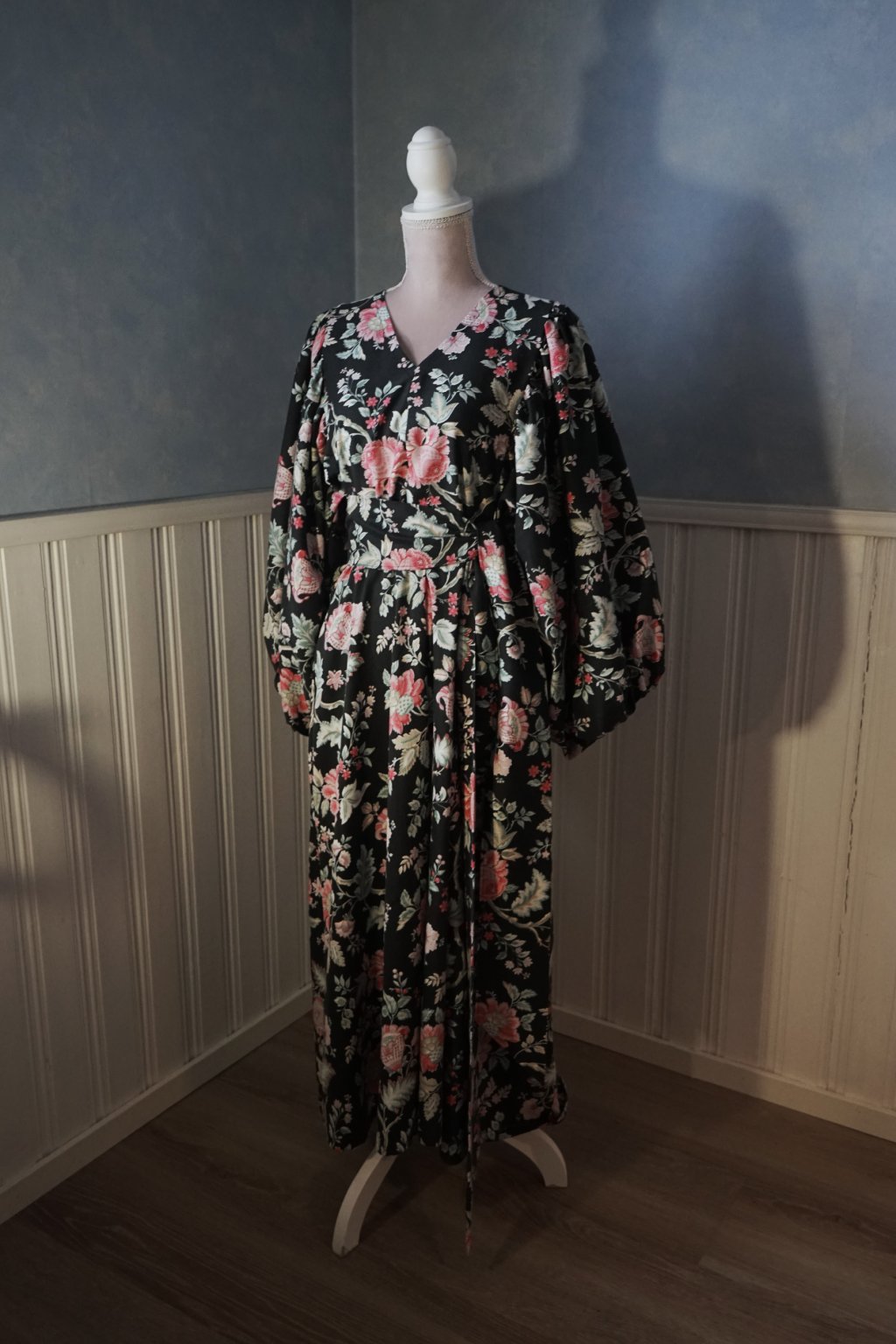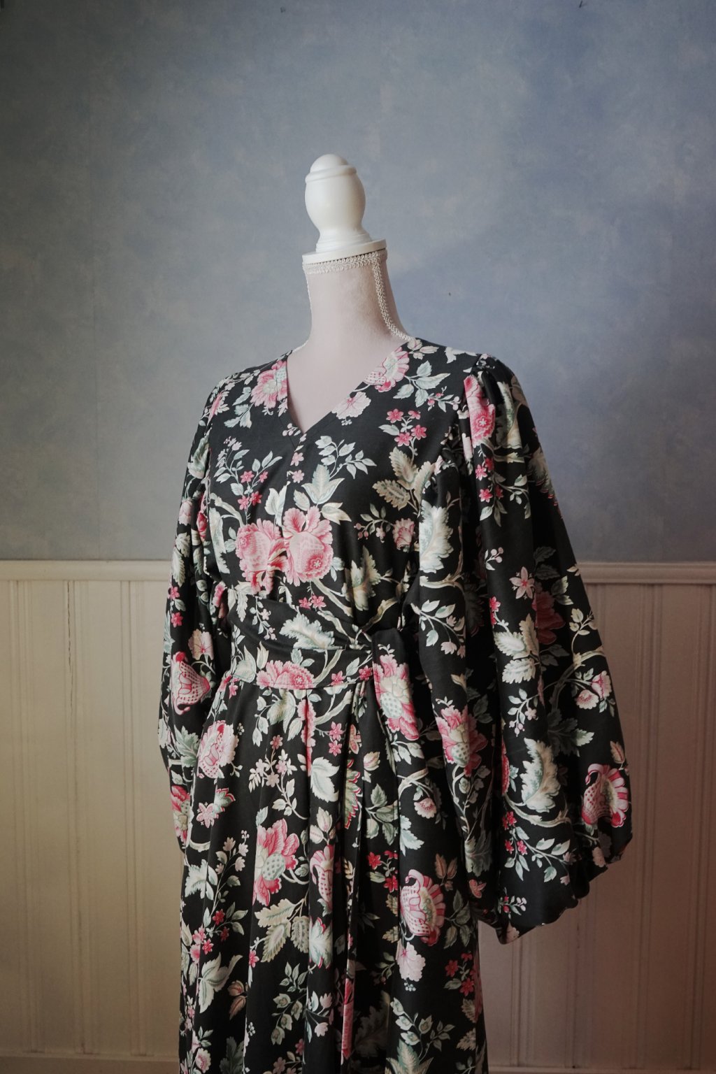 Moji favoriti. Šaty jsem ušila z nádherné, velmi pevné bavlny, která neskutečně drží tvar a vytvořila jsem z ní tak dlouhé, velmi objemné šaty, které stále vypasujete dle své figury a necháte ji vyniknout. Široké, dlouhé kimono rukávy, ve kterých Vám nebude ani v zimě zima, hluboké kapsy, pásek a třešničkou na dortu je vázání za krkem, díky kterému Vám šaty nikdy nesklouznou z ramen (V výstřih je totiž zepředu i zezadu!).