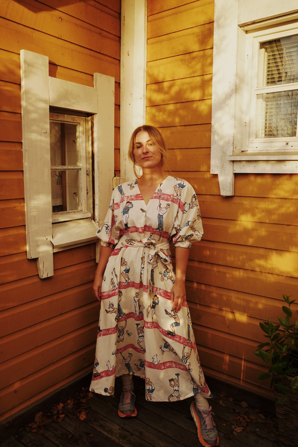 Ve svém druhém domově na severu Finska jsem se rozhodla pracovat trochu kreativněji a vytvářet pro Vás kousky z látek, které nacházím v místních secondhandech. Látky vybírám velmi pečlivě, vždy jsou v perfektním stavu a sahám po přírodních tkaninách. Šaty jsou tak od A do Z stvořené v Laponsku, střihově se opírám o kousky, které ode mě rádi nosíte a zároveň popouštím více uzdu fantazii.