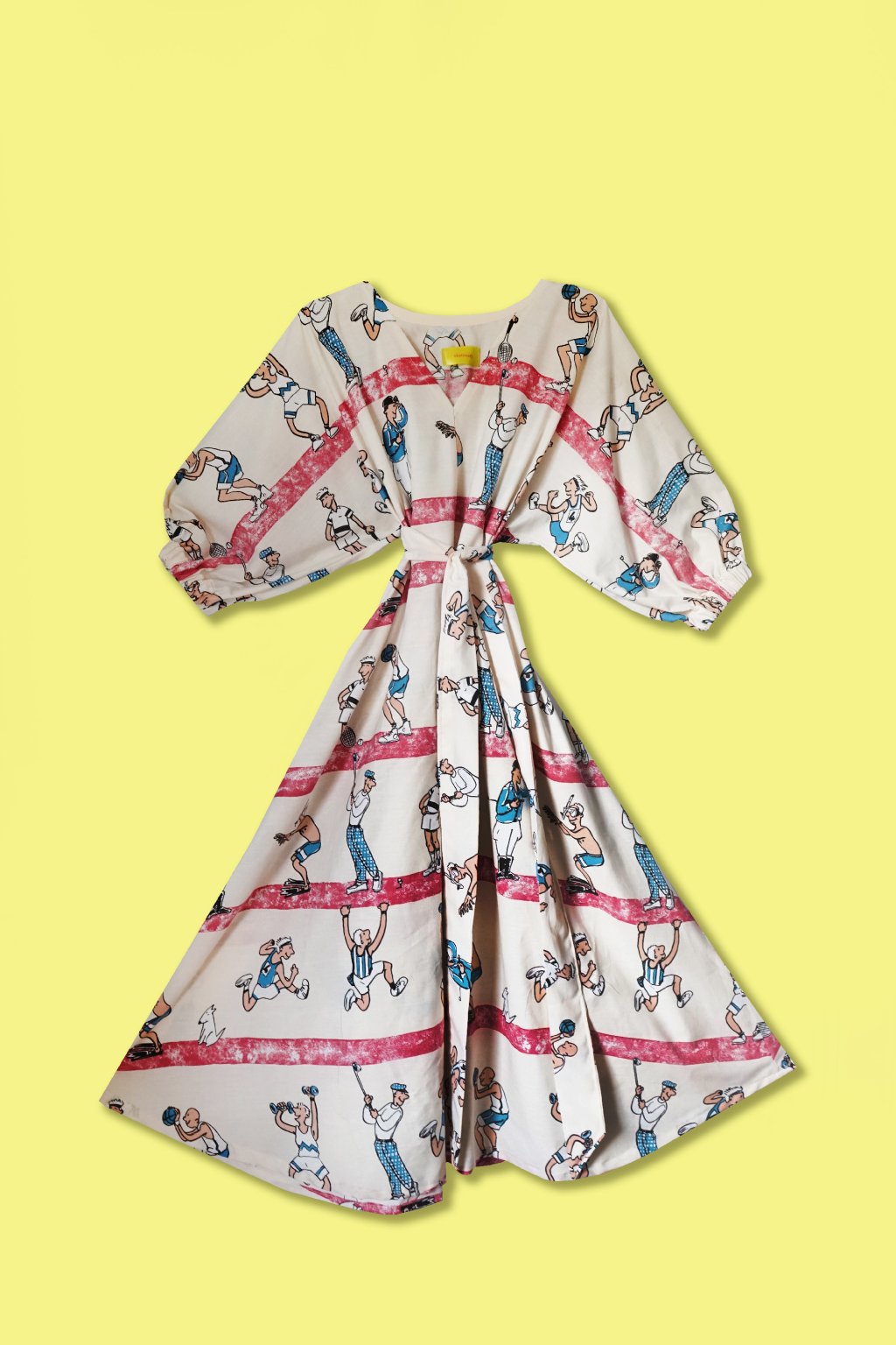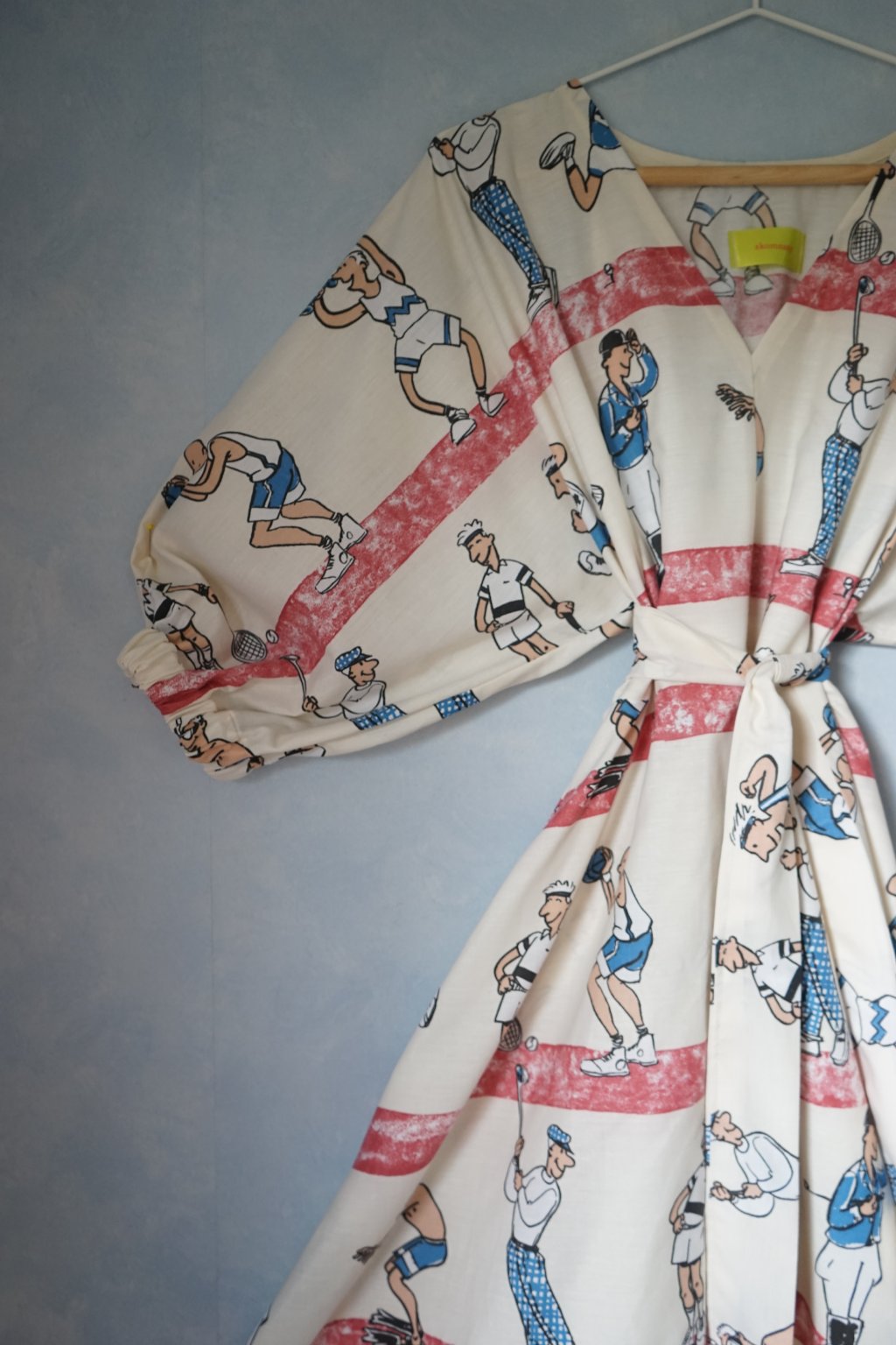 Máte-li rádi moje střihy s balónovými rukávy a dřímá ve vás sportovní duch, tyhle olympijské šaty jsem šila asi pro Vás! Krásná jemná bavlna potisklá sportovci ve finských národních barvách byla něčím, po čem jsem nemohla nesáhnout. Mají kapsy, sukni do A, pásek a patřičný wow efekt!