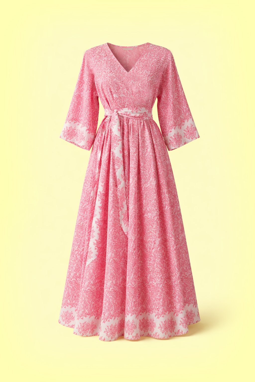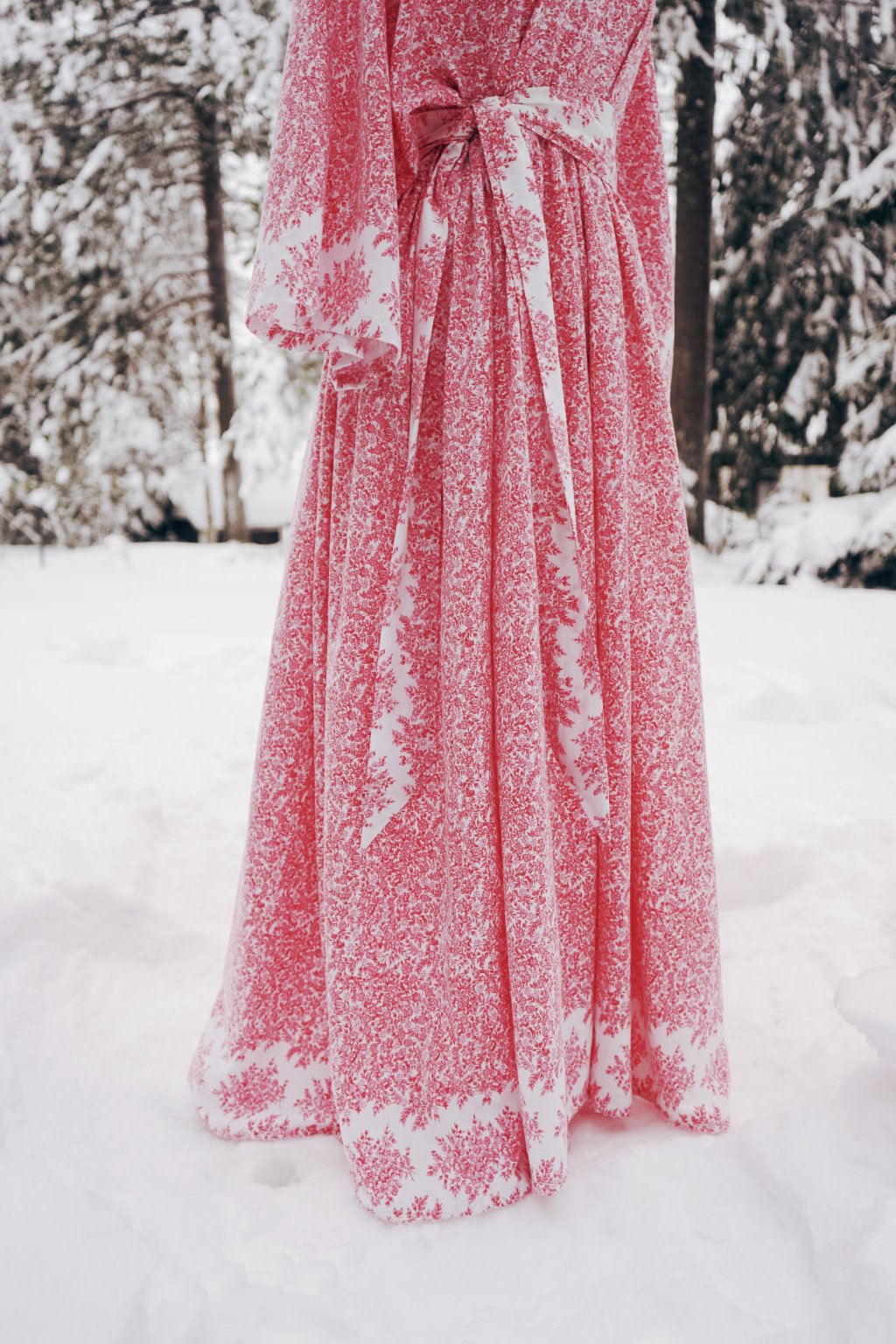 Moji favoriti. U tohoto bavlněného povlečení (mimochodem je to ta nejpříjemnější, jemňoučká bavlna) jsem si pohrála s geometrií jeho vzoru. Šaty se tak honosí krásným ombre efektem v rukávech a spodním lemu. Jsou to bohatý, dlouhý šaty s řasenou sukní a skrytými kapsami. Pásek je dozdobí a vypasuje, ale můžete ho i nechat doma, sluší jim to i oversized bez něj. Mají široké kimono rukávy s efektní prodlouženou délkou a můžete je nosit na obě strany - s V výstřihem vepředu, i vzadu.