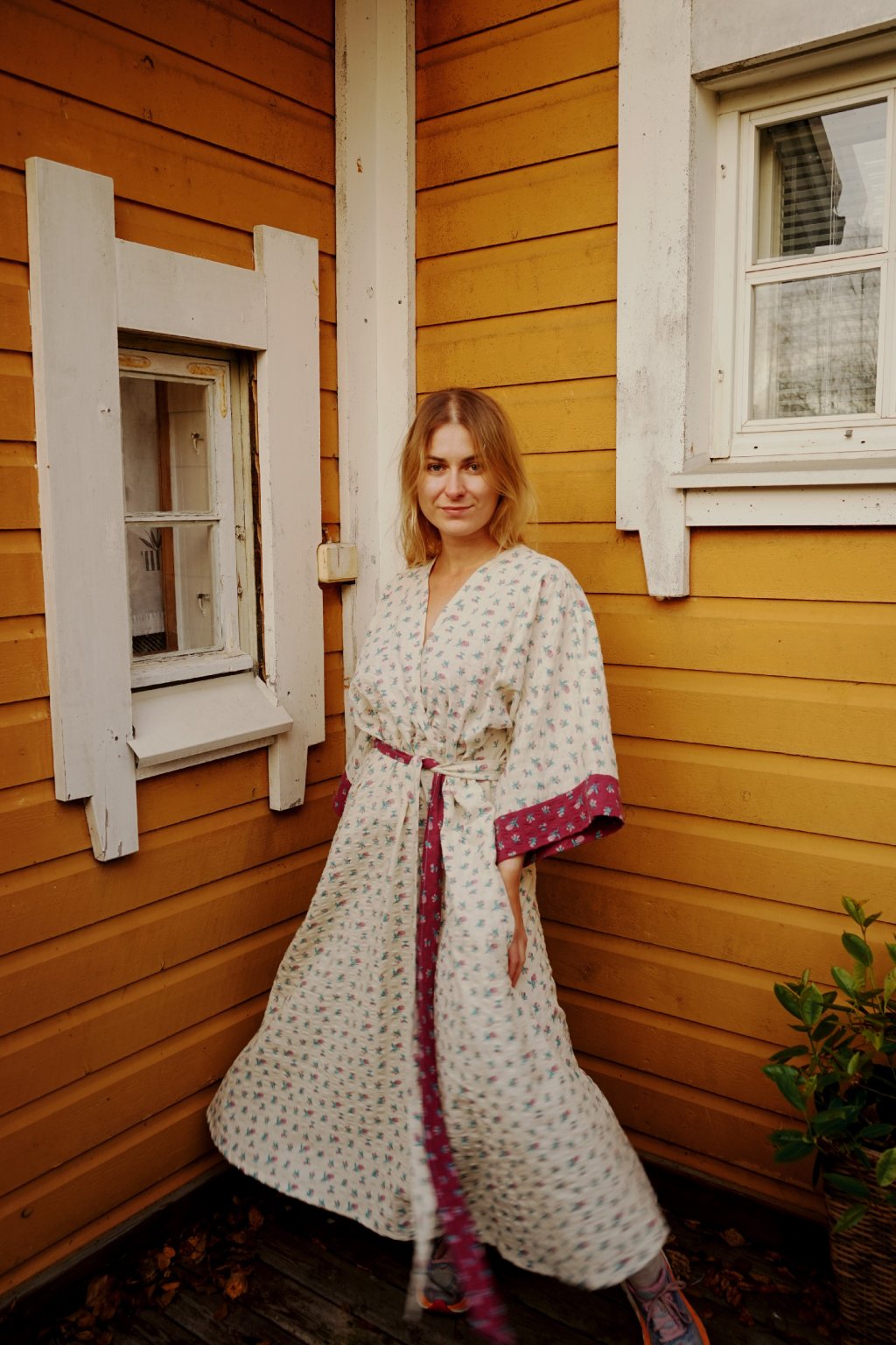 Ve svém druhém domově na severu Finska jsem se rozhodla pracovat trochu kreativněji a vytvářet pro Vás kousky z látek, které nacházím v místních secondhandech. Látky vybírám velmi pečlivě, vždy jsou v perfektním stavu a sahám po přírodních tkaninách. Šaty jsou tak od A do Z stvořené v Laponsku, střihově se opírám o kousky, které ode mě rádi nosíte a zároveň popouštím více uzdu fantazii.