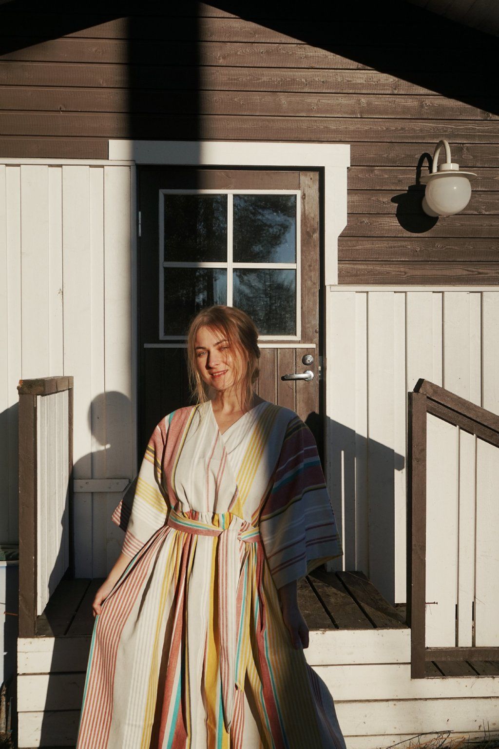 Ve svém druhém domově na severu Finska jsem se rozhodla pracovat trochu kreativněji a vytvářet pro Vás kousky z látek, které nacházím v místních secondhandech. Látky vybírám velmi pečlivě, vždy jsou v perfektním stavu a sahám po přírodních tkaninách. Šaty jsou tak od A do Z stvořené v Laponsku, střihově se opírám o kousky, které ode mě rádi nosíte a zároveň popouštím více uzdu fantazii.