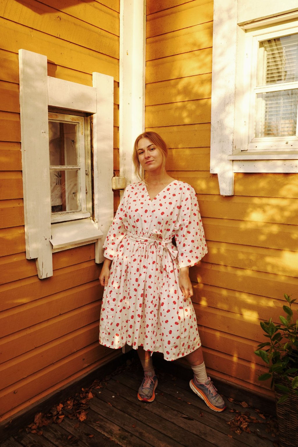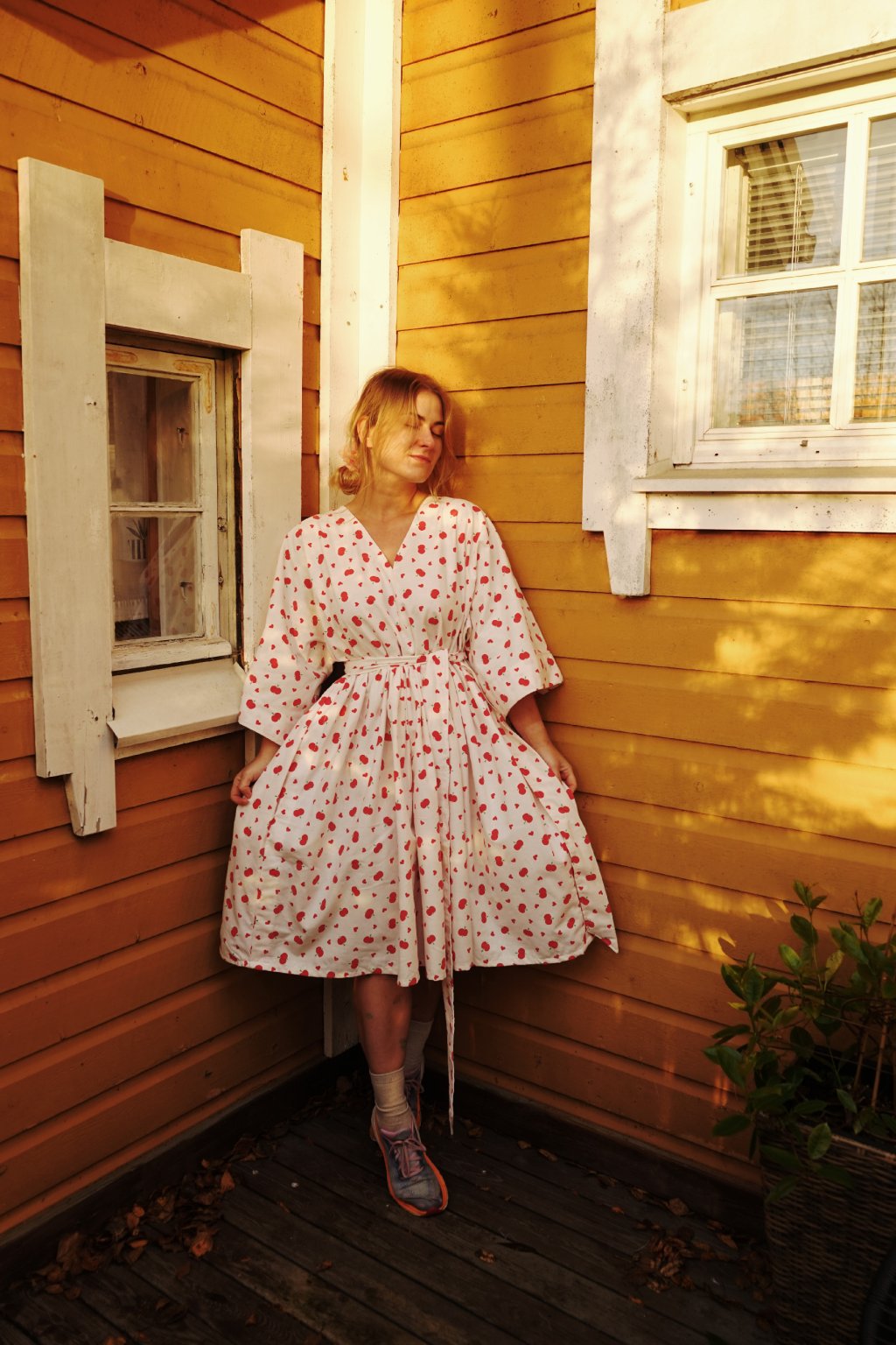 Ve svém druhém domově na severu Finska jsem se rozhodla pracovat trochu kreativněji a vytvářet pro Vás kousky z látek, které nacházím v místních secondhandech. Látky vybírám velmi pečlivě, vždy jsou v perfektním stavu a sahám po přírodních tkaninách. Šaty jsou tak od A do Z stvořené v Laponsku, střihově se opírám o kousky, které ode mě rádi nosíte a zároveň popouštím více uzdu fantazii.