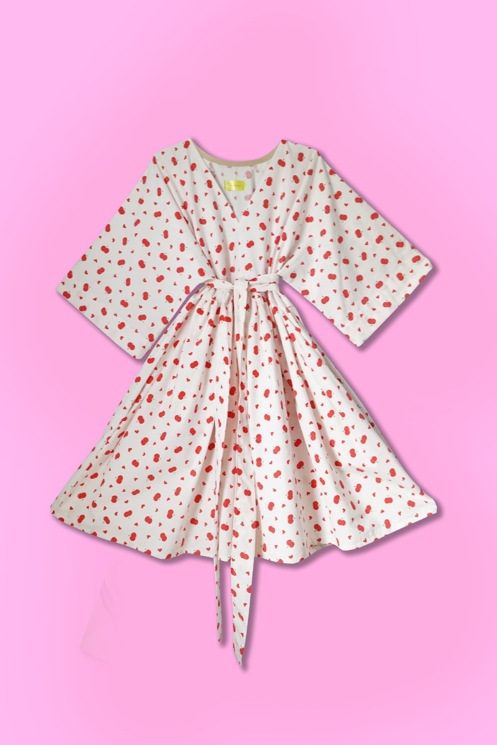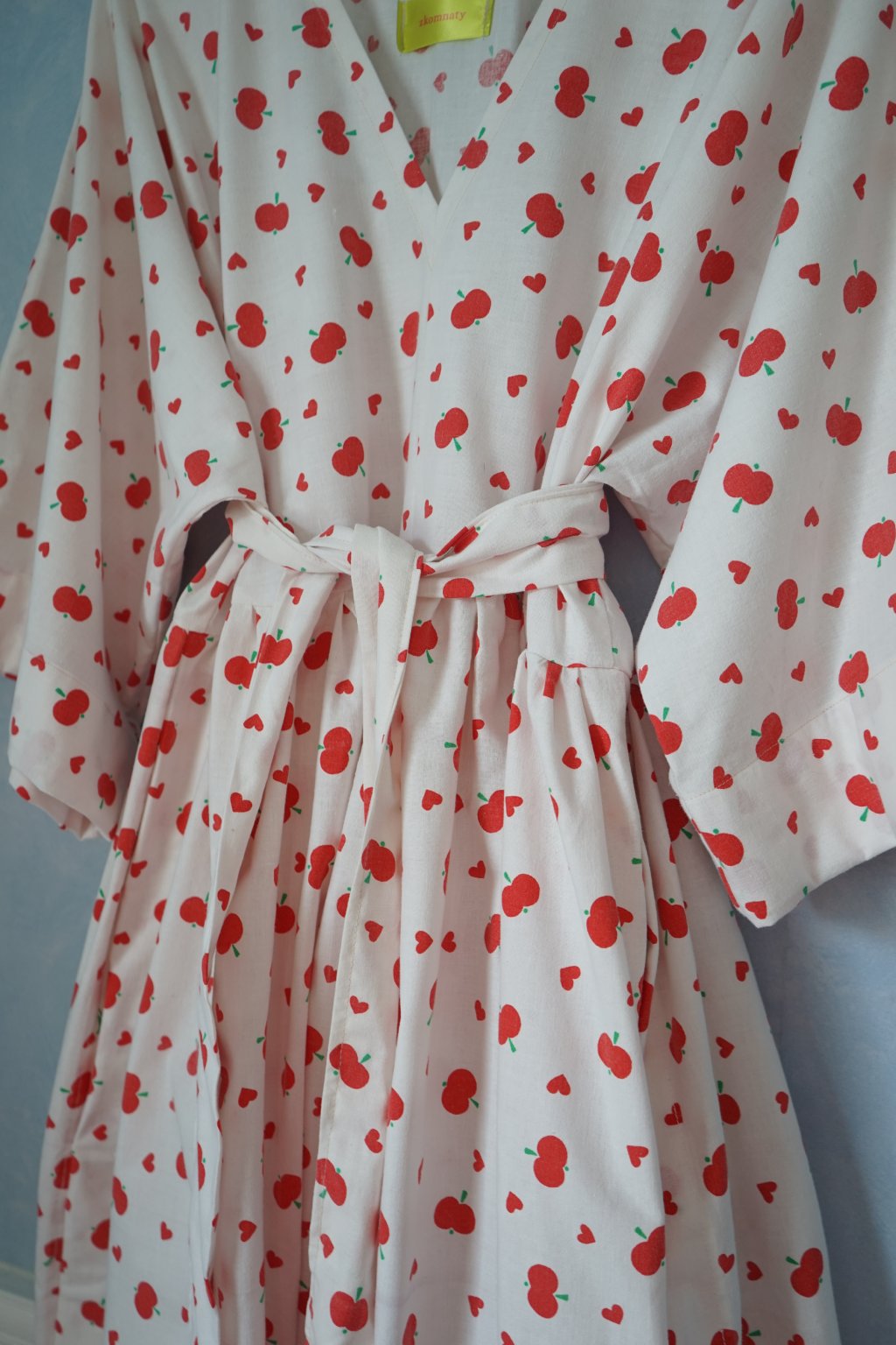 Štrůdl budou šaty s tou nejbohatší sukní, co máte v šatníku. Skrývá kapsy a řasení navazuje na top s kimono rukávy a V výstřihem. Rukáv na podzim lehce prodlužuji a šaty na Vás vidím i oblečené přes rolák a silonky! <3 Součástí šatů je pásek ze stejné, jablíčko látky, kterým si šaty v pase vypasujete dle potřeby.